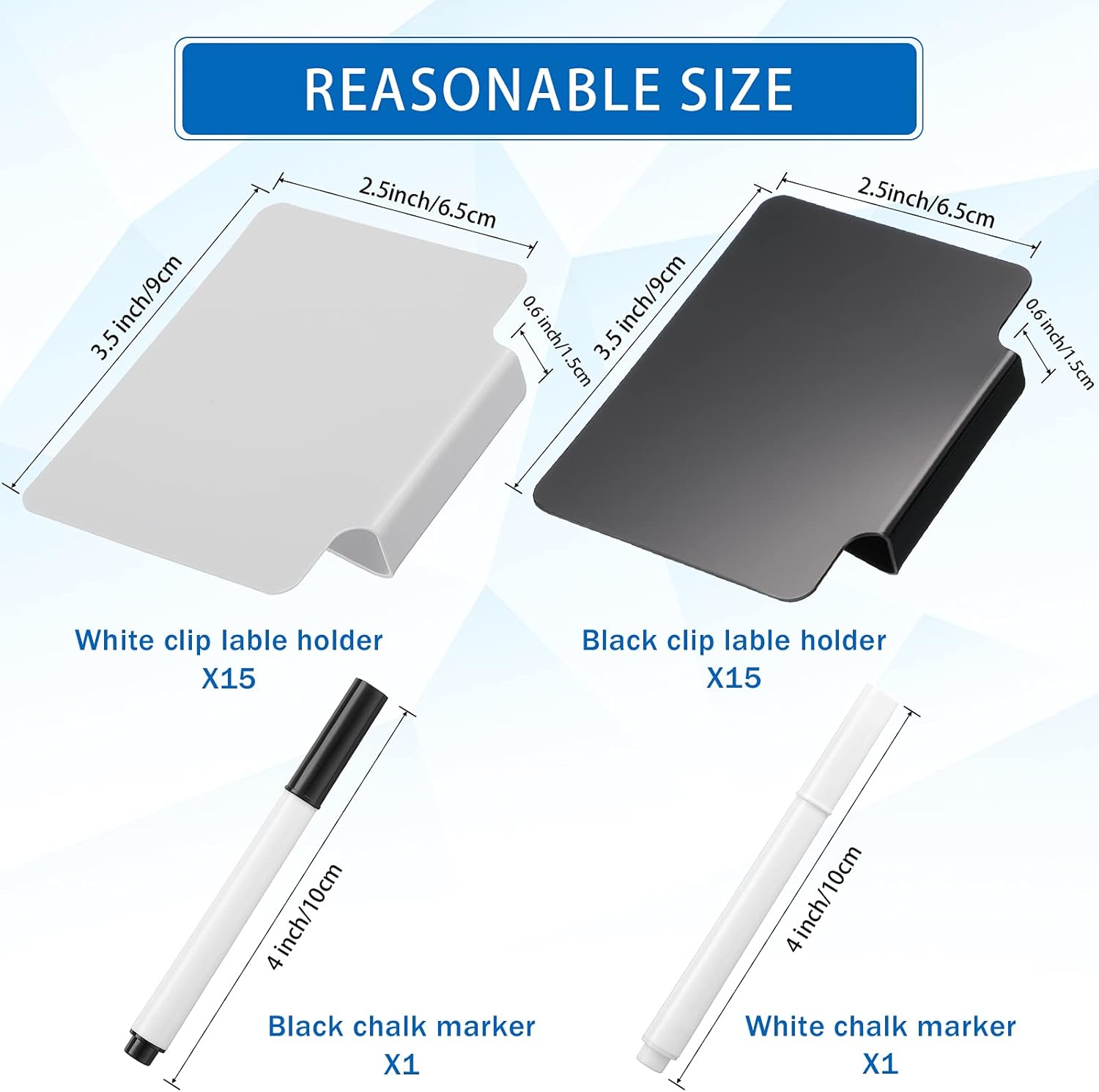 - Practical combination: you will receive a set of 30 pieces 2.5 inch x 3.5 inch of clip label holders and 2 pieces white chalk markers that can be erased; They are the good resource for grouping and organizing your pantry in detail; Each label holder easily clips to bins, baskets or boxes and can be removed