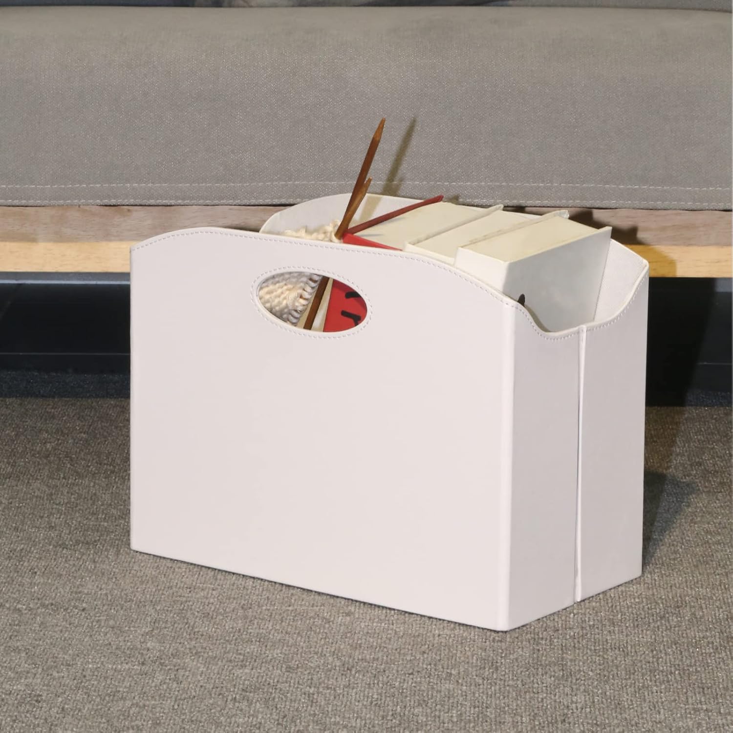 EZDeco Magazine Holder Foldable Magazine Rack Floor PU Leather File Holder Newspaper Book Storage Basket Document File Folder Organizer for Office Home (White-1)