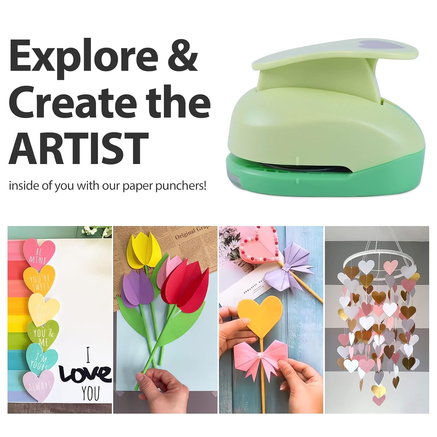 UCEC 2 Inch Heart Punch, Heart Paper Punch Shapes, Large Decorative Craft Hearts Hole Puncher for Kids Paper Crafts, Card Making, Scrapbooking, Hearts Shaped Hole Punch