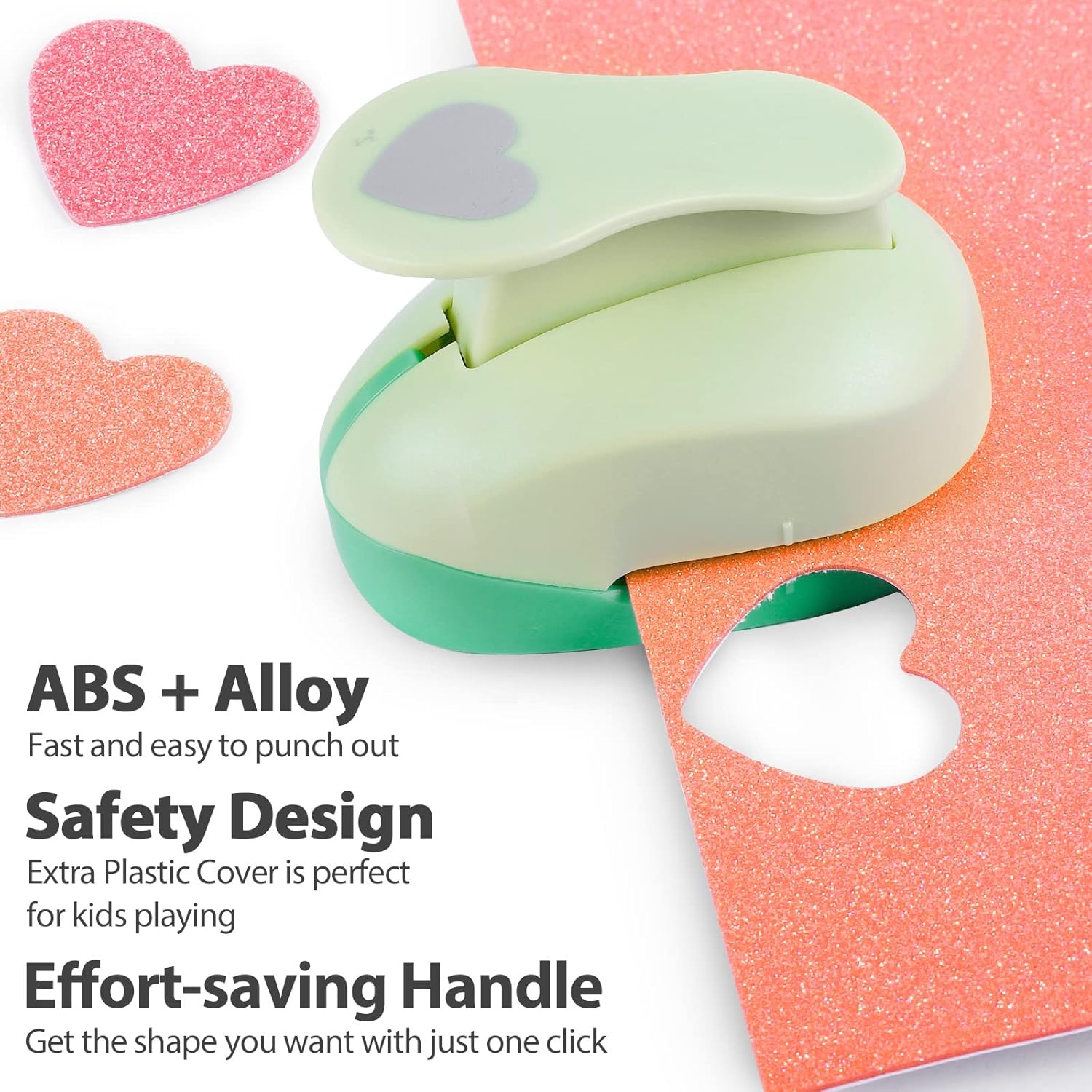- Easy to Use : The 2 inch hole punch with spring-action lever makes the craft circle punch easier and comfortable to use, easy get heart shape from card-stock, punches cleanly every time for consistently great designs