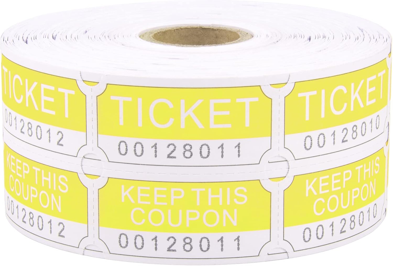 ESSENTIAL 1000 Yellow Double RaffleTickets Roll, Raffle Tickets Printable for Leisure, Movie Watching, Entertainment