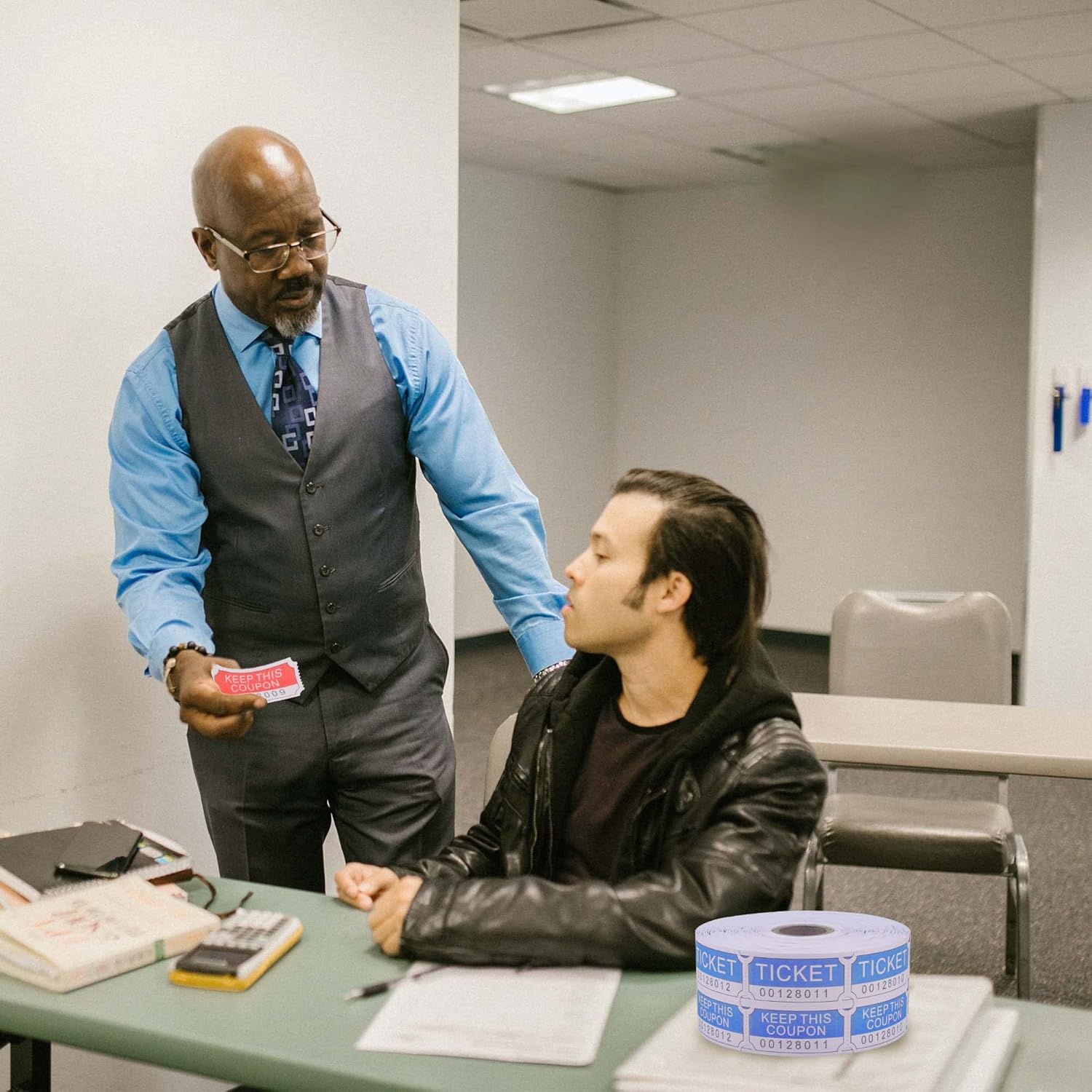 - Good for raffles, 50/50 drawings and door prizes. Tickets with spaces on back for name, address, phone