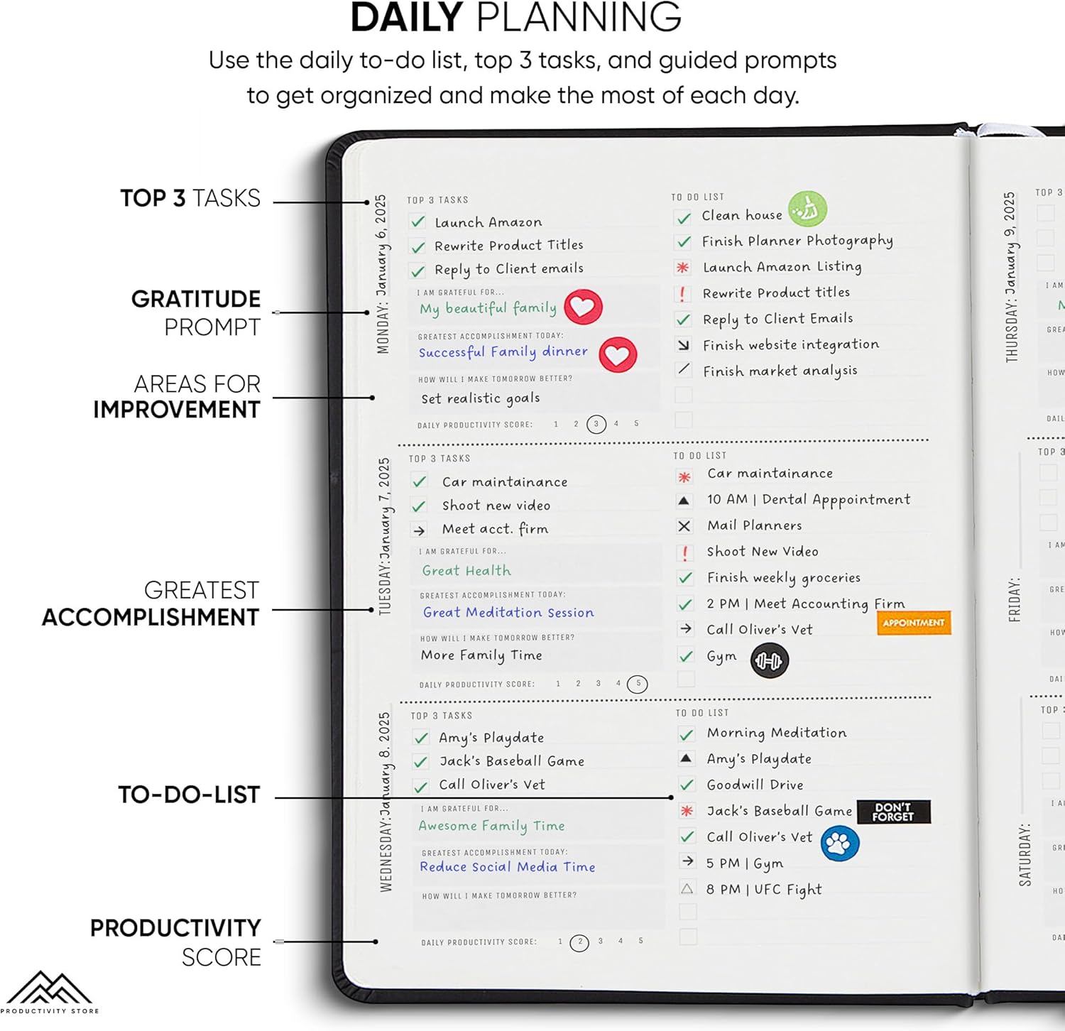 - Plan, Track & Reflect - Effective 2025 daily planner system complete with “Top 3” tasks, to do list, reflection prompts and a daily mood tracker. A perfect daily planner 2025-2026 to get the most out of each day. A perfect daily 2025-2026 planner to get the most out of each year.