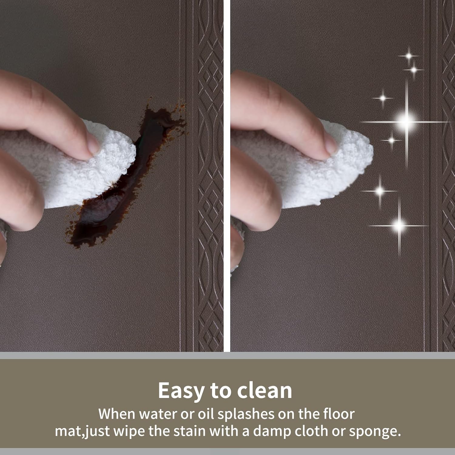 - 【EASY TO CLEAN】Stain resistant and waterproof material makes Broad i Home Anti Fatigue Mat easily wipe clean and will not collect dirt. Novel innovation of natural wood grain pattern designs on the top of our comfort mat makes you be immersive.
