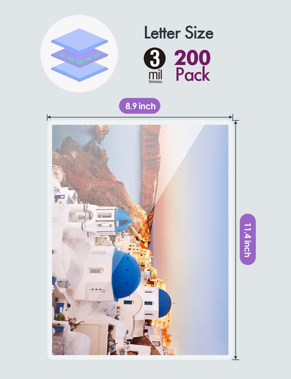 - 【Specifications】Fits Letter size documents, 8.5 x 11 in (229mm x 292mm), pack of 200 Laminator sheets, 3Mil thickness;