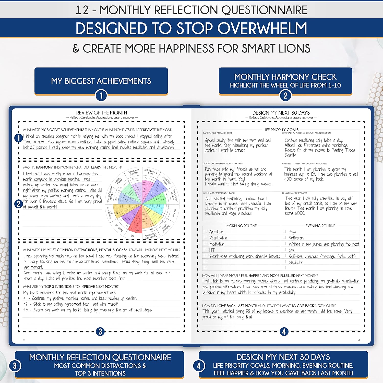 - HABIT TRACKER JOURNAL - Reduce overwhelm, tension, and procrastination by using a groundbreaking 8-step technique to reclaim your life's balance, clarity, and serenity while achieving your goals. Seize the potential of each day. This personal organizer dedicates a separate page for every day, featuring sections for scheduling, goal setting, prioritization, task lists, reflection, and ample space for notes. With its expansive large format, you possess all the room necessary for comprehensive planning.