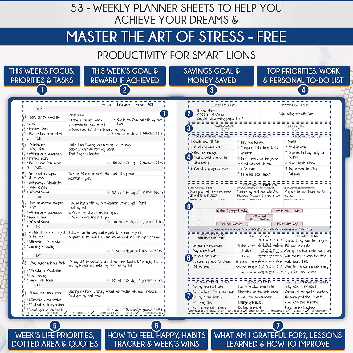 - Mindset & Gratitude Practice - Break free from overwhelm and build powerful routines with this practical habit journal, integrated into your life planner undated for men. Track progress toward your goals, growth and financial. Excellent choice for a focused daily planner for men or comprehensive men journal.