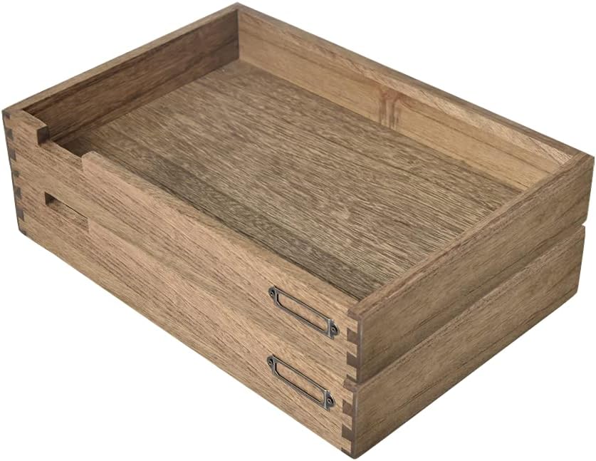 - [STACKABLE]: This paper sorter of wooden desk organizer set not only looks great, but it’s simple and easy to use as teacher desk décor or industrial dresser.You can use the two wood trays separately as letter trays or you can just stack them together and they are ready to use for stackable desk trays as a file organizer!