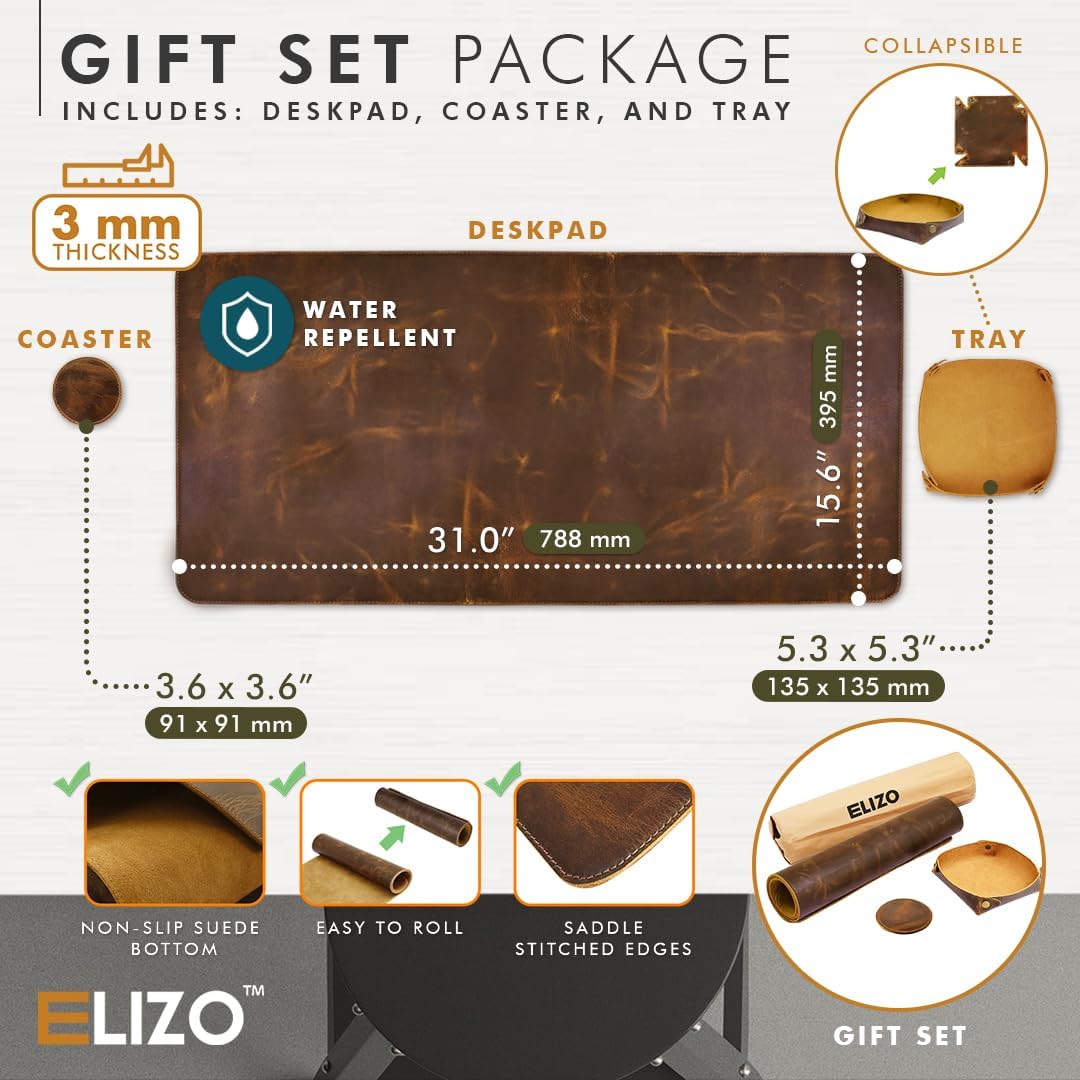 ELIZO Leather Desk Pad Real Leather Desk Mat Thick (3mm) Double Layer (31x15.6) Cover Blotter Desk Protector Large Computer Mat for Keyboard Mouse Pad Table Laptop Mat Office Desktop Accessories