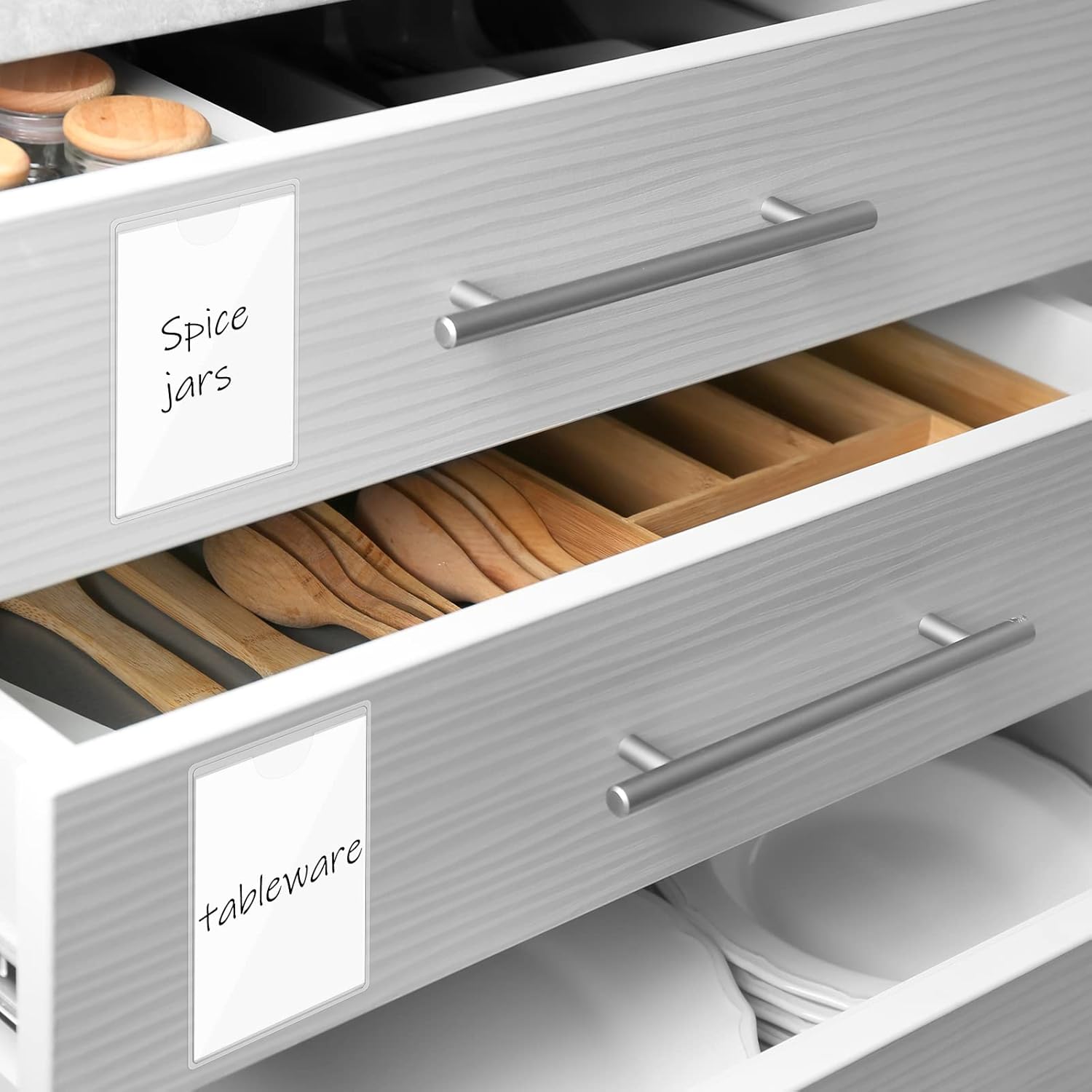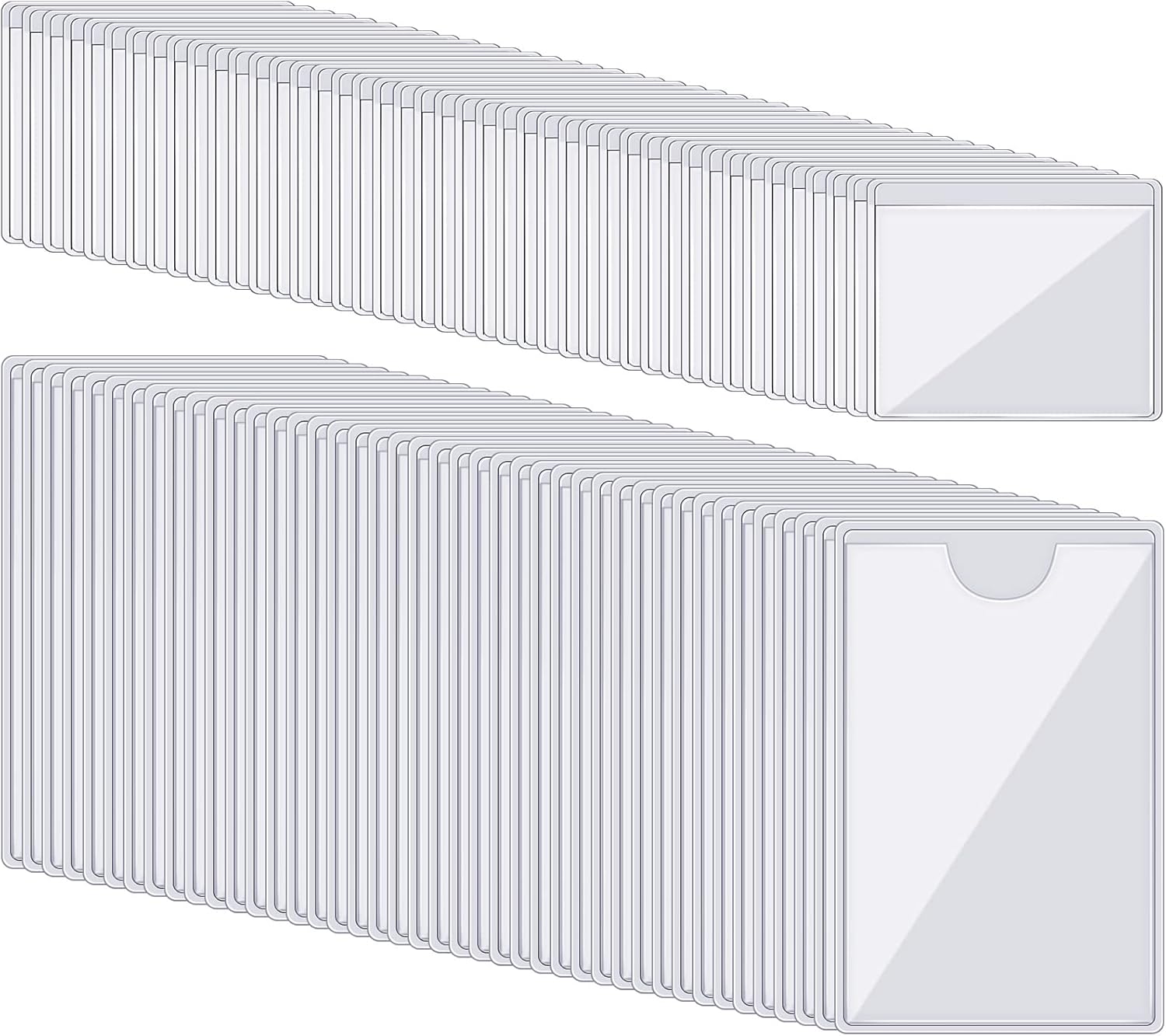 100 Self-adhesive Index Card Holder for Business Cards, Clear Plastic Sticky Labels Holders for Storage Bins Toy Bins Scrapbooks, Organize and Protect Cards Photos Labels (2.32 x 3.54'', 1.85 x1.57'')