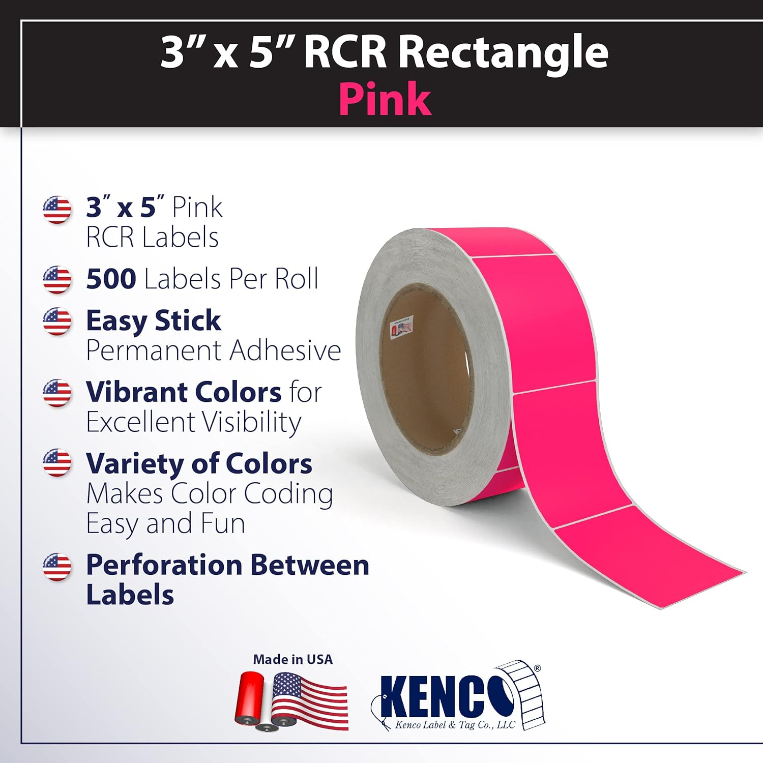 Kenco Color Coding 3 X 5 Rectangle Labels, Inventory Control Stickers 500 Labels Per Roll, Made in The USA (Fluorescent Pink)