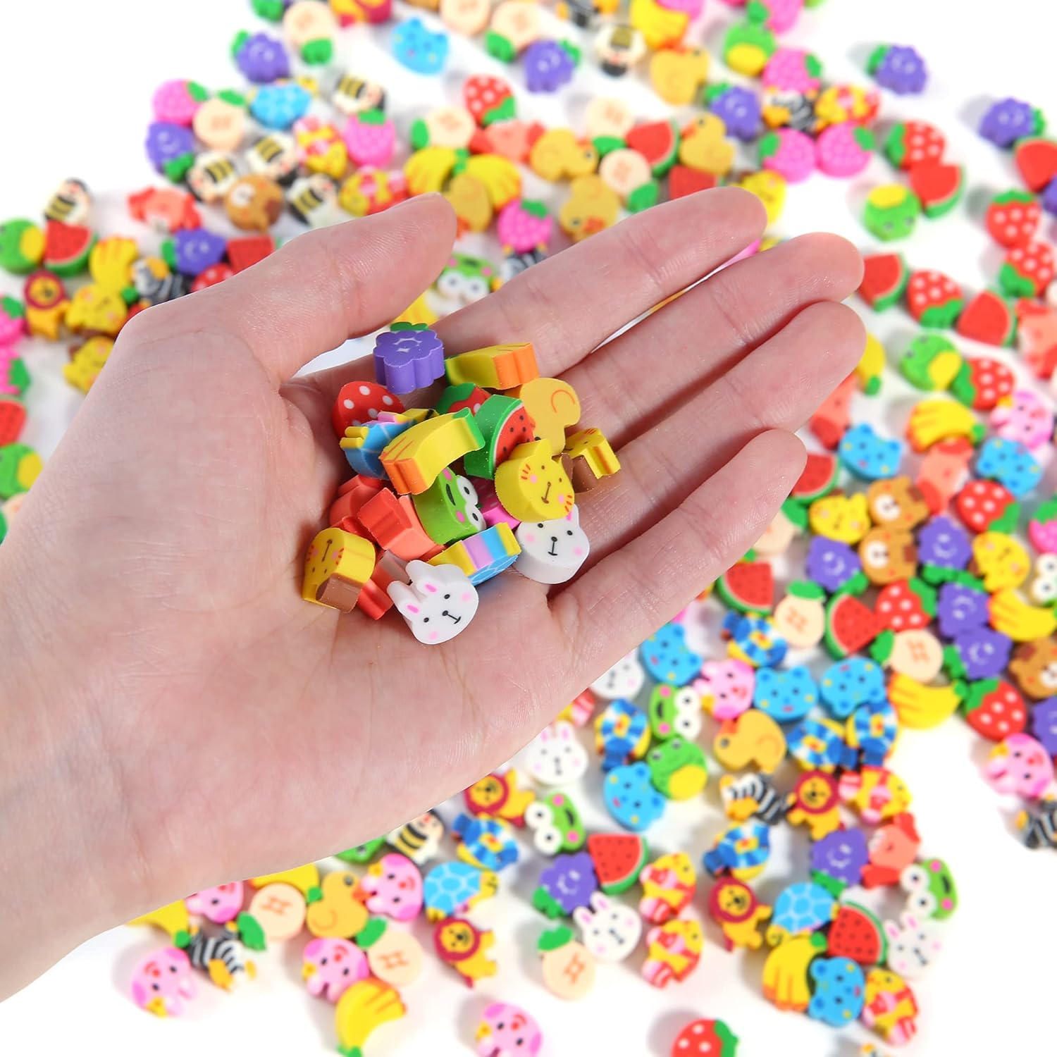 1000 Pieces Mini Erasers for Kids, Bulk Small Animal Fruit Pencil Erasers Assortment for Home Rewards, School Supplies and Gift Filling