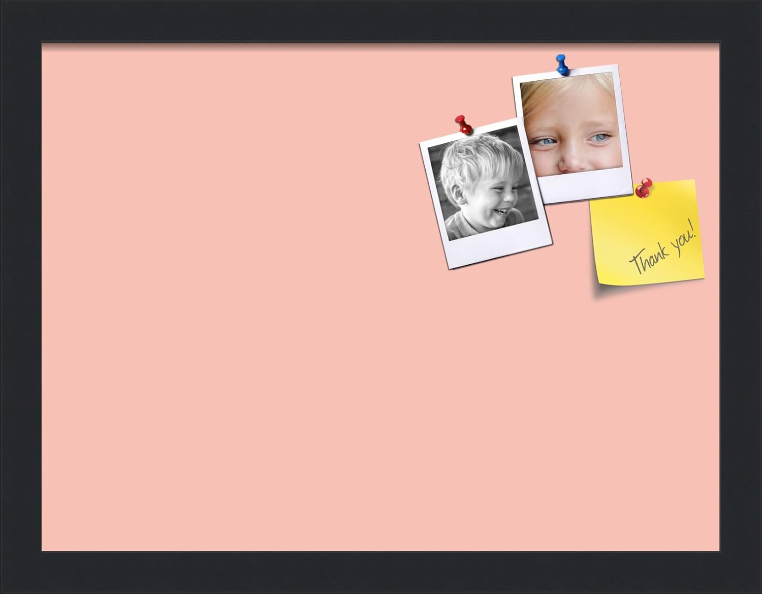 PinPix 16x12 Inch Cork Bulletin Board. This Decorative Framed Pin Board Comes with Pink Pastel Design and a Satin Black Frame. Ideal for Home Office Decor or Message Board (PinPix-1813)