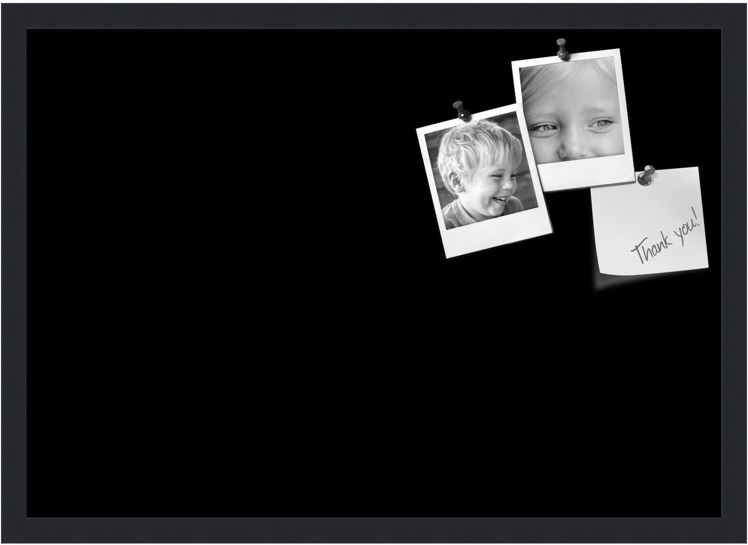 PinPix 27x19 Inch Cork Bulletin Board. This Decorative Framed Pin Board Comes with Solid Black Design and a Satin Black Frame. Ideal for Home Office Decor or Message Board (PinPix-622)