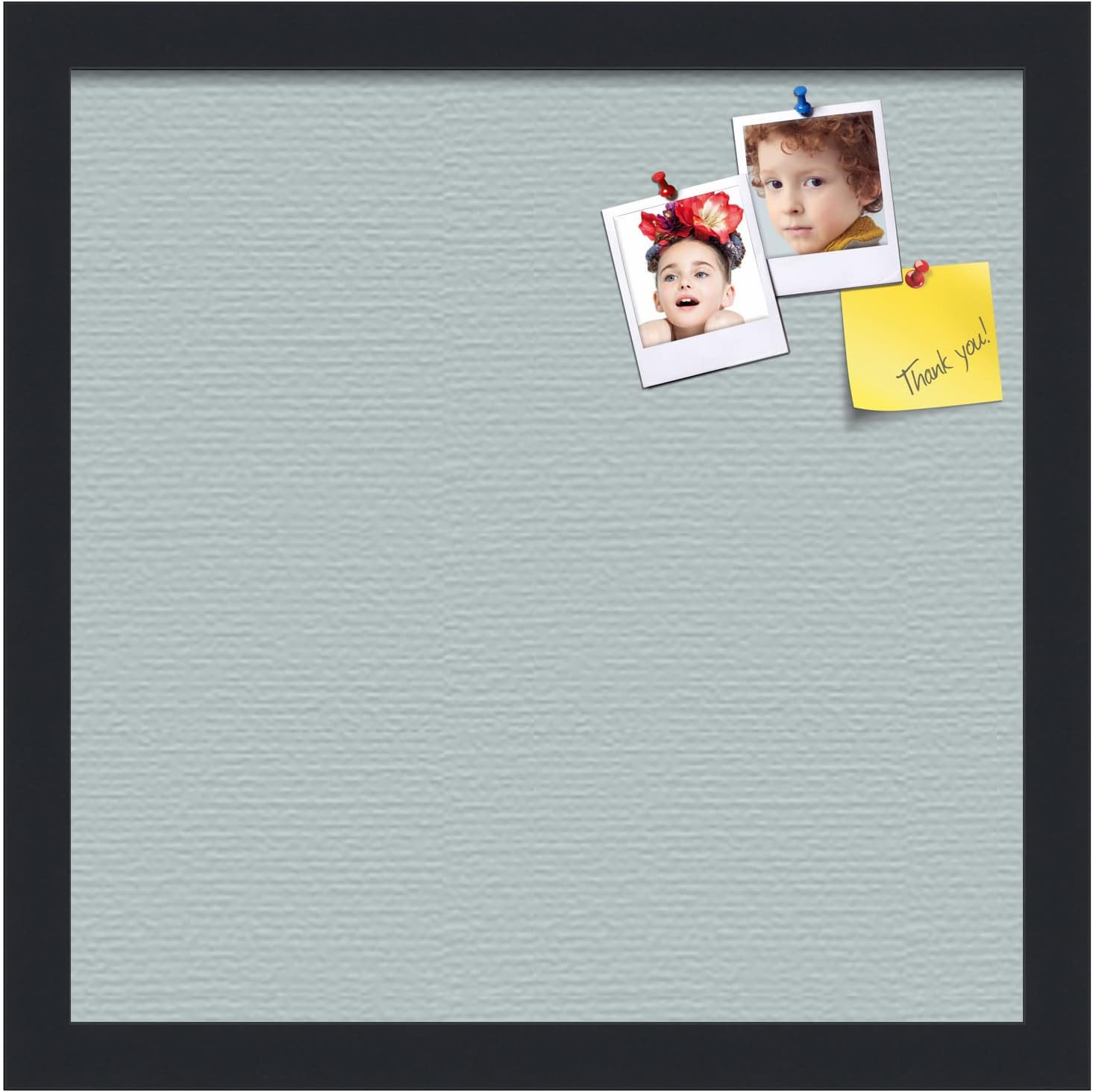 PinPix 14x14 Inch Cork Bulletin Board. This Decorative Framed Pin Board Comes with Soft Blue Design and a Satin Black Frame. Ideal for Home Office Decor or Message Board (PinPix-1814)
