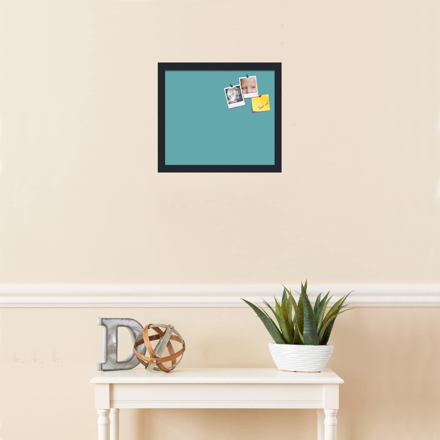 PinPix 15x13 Inch Cork Bulletin Board. This Decorative Framed Pin Board Comes with Aqua Pastel Design and a Satin Black Frame. Ideal for Home Office Decor or Message Board (PinPix-1806)