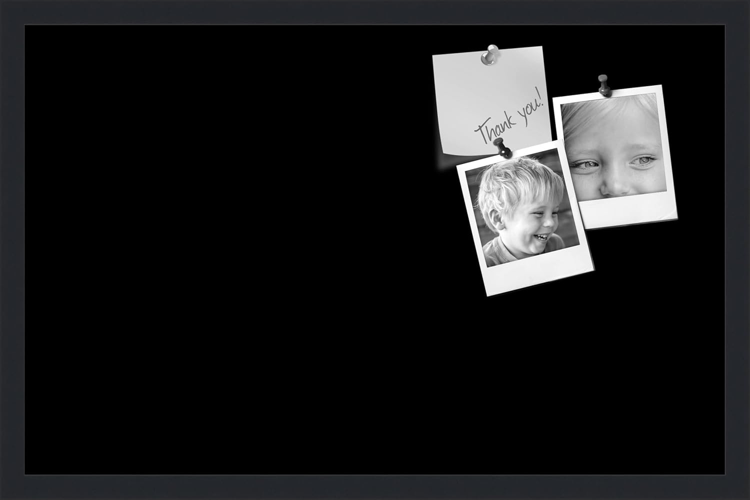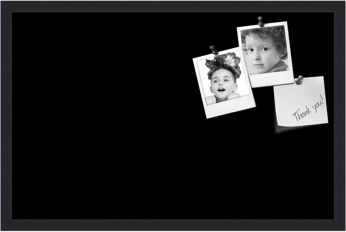 PinPix 28x18 Inch Cork Bulletin Board. This Decorative Framed Pin Board Comes with Solid Black Design and a Satin Black Frame. Ideal for Home Office Decor or Message Board (PinPix-622)
