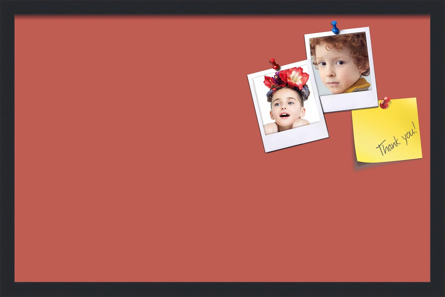 PinPix 28x18 Inch Cork Bulletin Board. This Decorative Framed Pin Board Comes with Crimson Pastel Design and a Satin Black Frame. Ideal for Home Office Decor or Message Board (PinPix-1807)