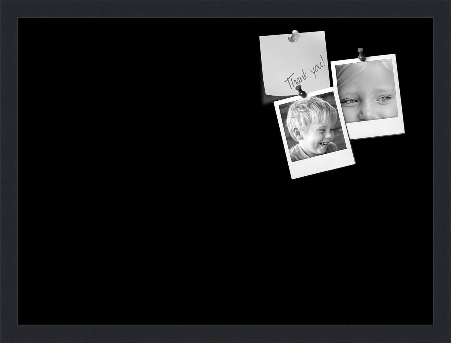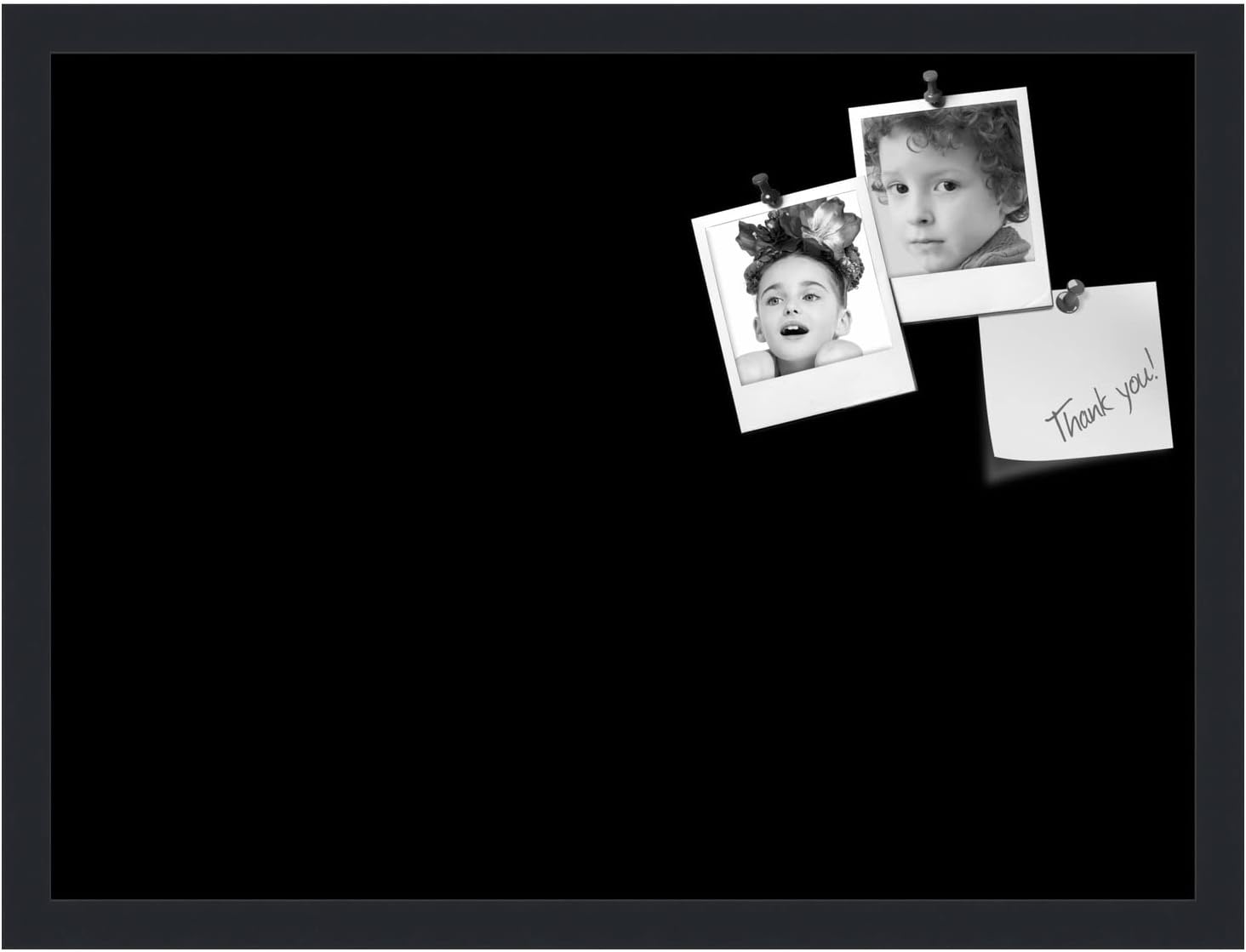 PinPix 23x17 Inch Cork Bulletin Board. This Decorative Framed Pin Board Comes with Solid Black Design and a Satin Black Frame. Ideal for Home Office Decor or Message Board (PinPix-622)