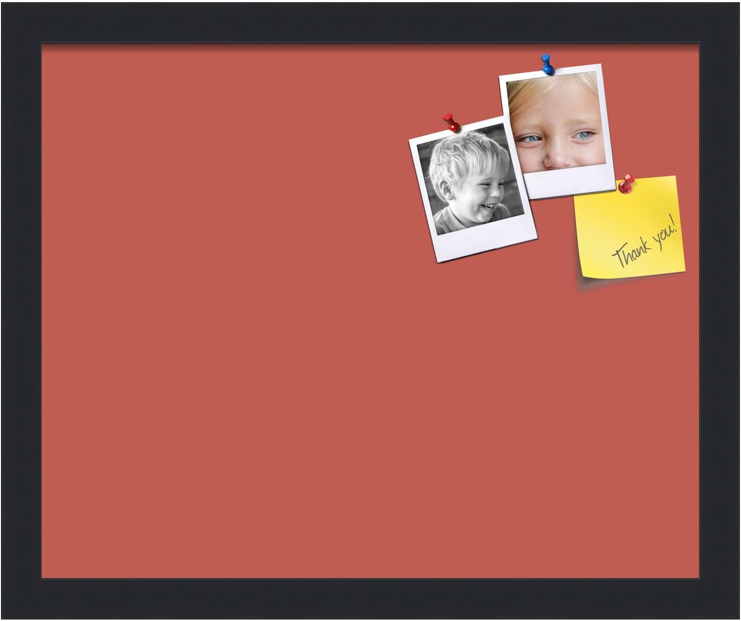 PinPix 16x13 Inch Cork Bulletin Board. This Decorative Framed Pin Board Comes with Crimson Pastel Design and a Satin Black Frame. Ideal for Home Office Decor or Message Board (PinPix-1807)