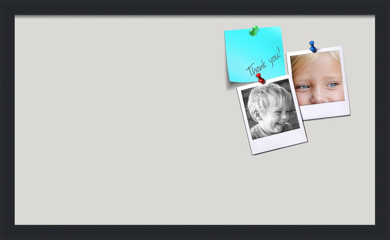PinPix 24x14 Inch Cork Bulletin Board. This Decorative Framed Pin Board Comes with Light Stone Design and a Satin Black Frame. Ideal for Home Office Decor or Message Board (PinPix-1809)