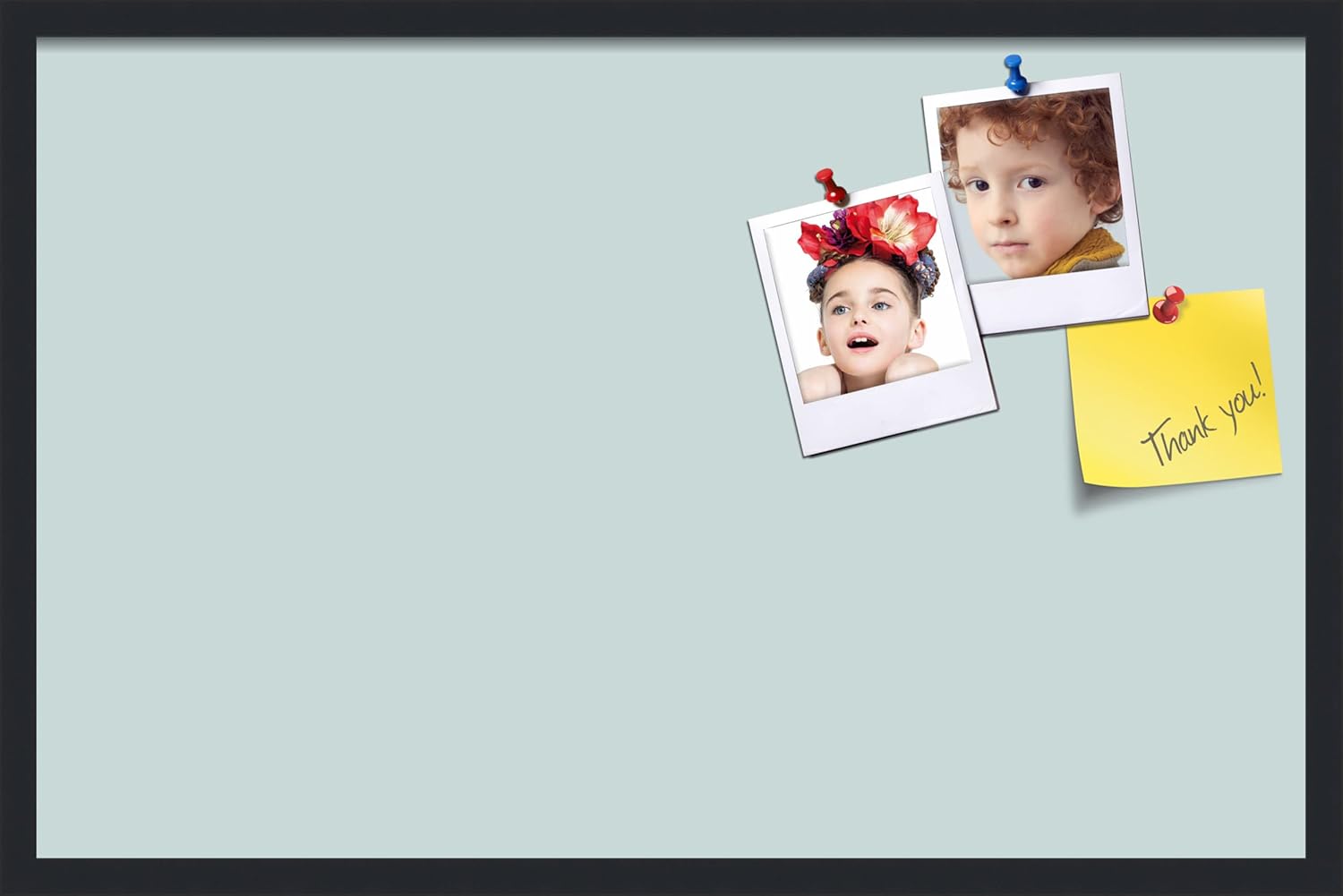 PinPix 34x22 Inch Cork Bulletin Board. This Decorative Framed Pin Board Comes with Soft Blue Design and a Satin Black Frame. Ideal for Home Office Decor or Message Board (PinPix-1814)