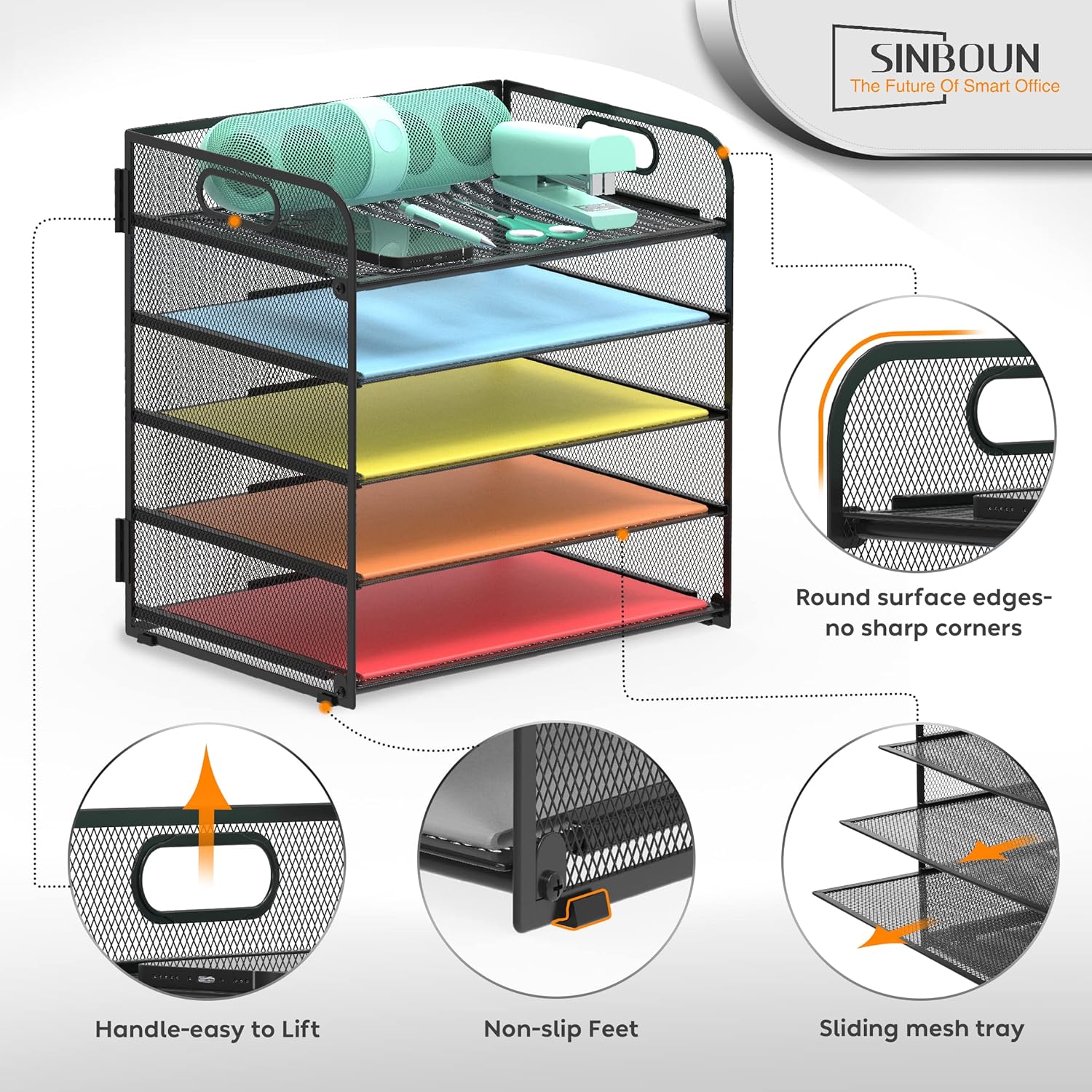 - The 5 tier letter tray with handle pull out trays of well-thought out dimensions that will keep the stuff you need organized, at hand