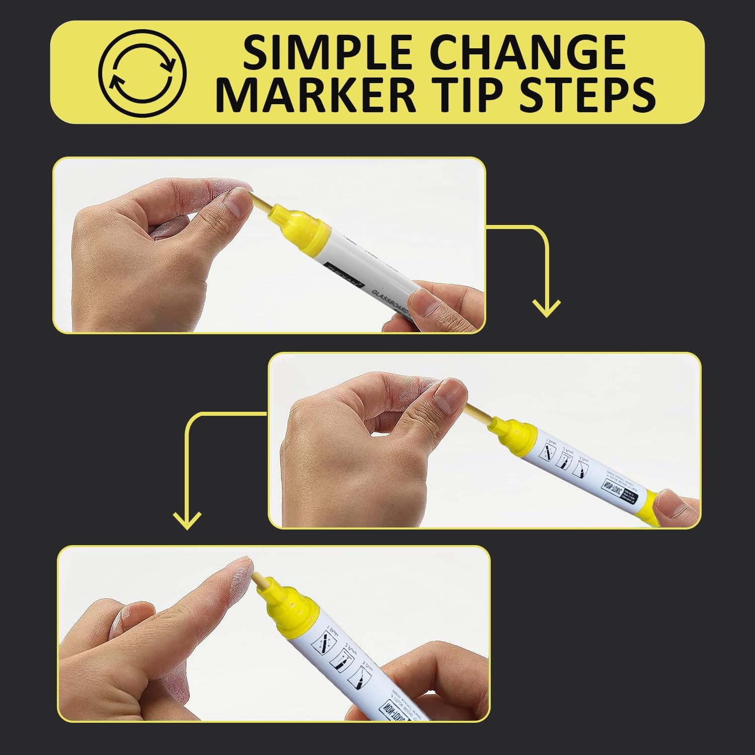 - 【BOLD COLOR】– Premium bright yellow glass dry-erase markers are optimized for use on non-porous surfaces, such as black glass boards/acrylic board. Delivers strong bold color every time, to ensure that your message is distinct and legible. Note: Doesn't include replacement marker tip.