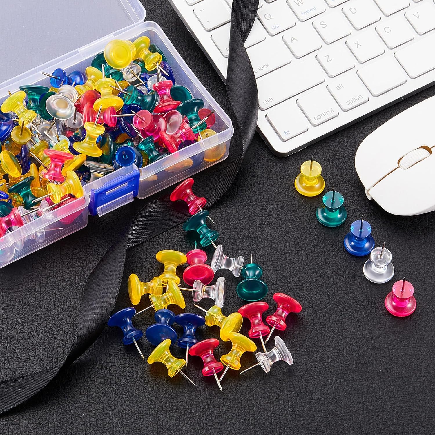 Outus 100 Pcs Giant Push Pins Large Thumb Tacks Plastic Heads 1 Inch Jumbo Push Pins for Cork Board Map Posters Office School(Rose Red, Clear, Dark Blue, Dark Green, Yolk Yellow)