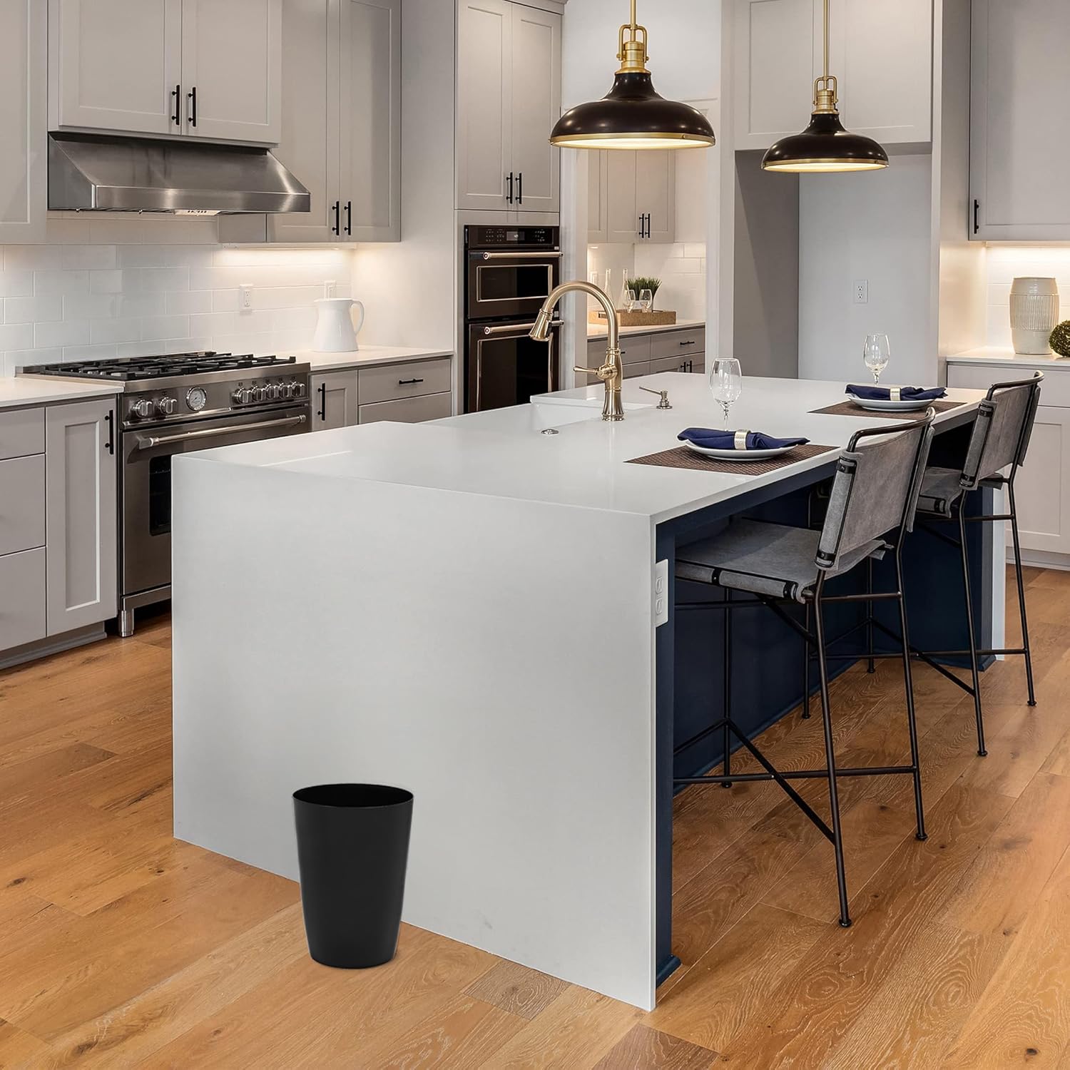 - COMPACT TRASH CAN: The design makes it ideal for small spaces. Perfect for next to toilet, shower, under cabinets, sinks, desks, and other places in need of a small garbage can. The sleek design makes it a perfect office trash can as well