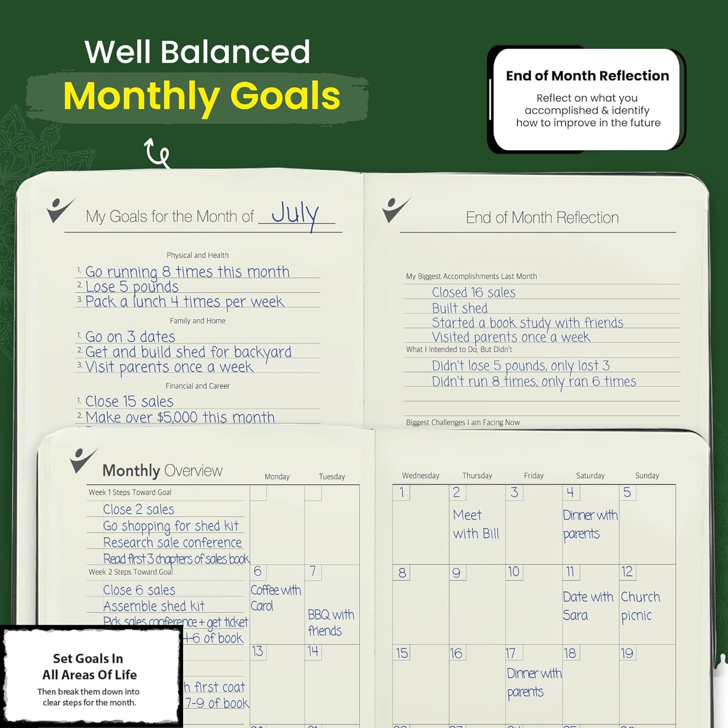 - BALANCED LIFE ORGANIZATION – Built-in sections guide you through setting long-term and monthly goals, weekly priorities, and end-of-month reflections. Great for professionals, students, business owners and entrepreneurs looking for better time management and balance.