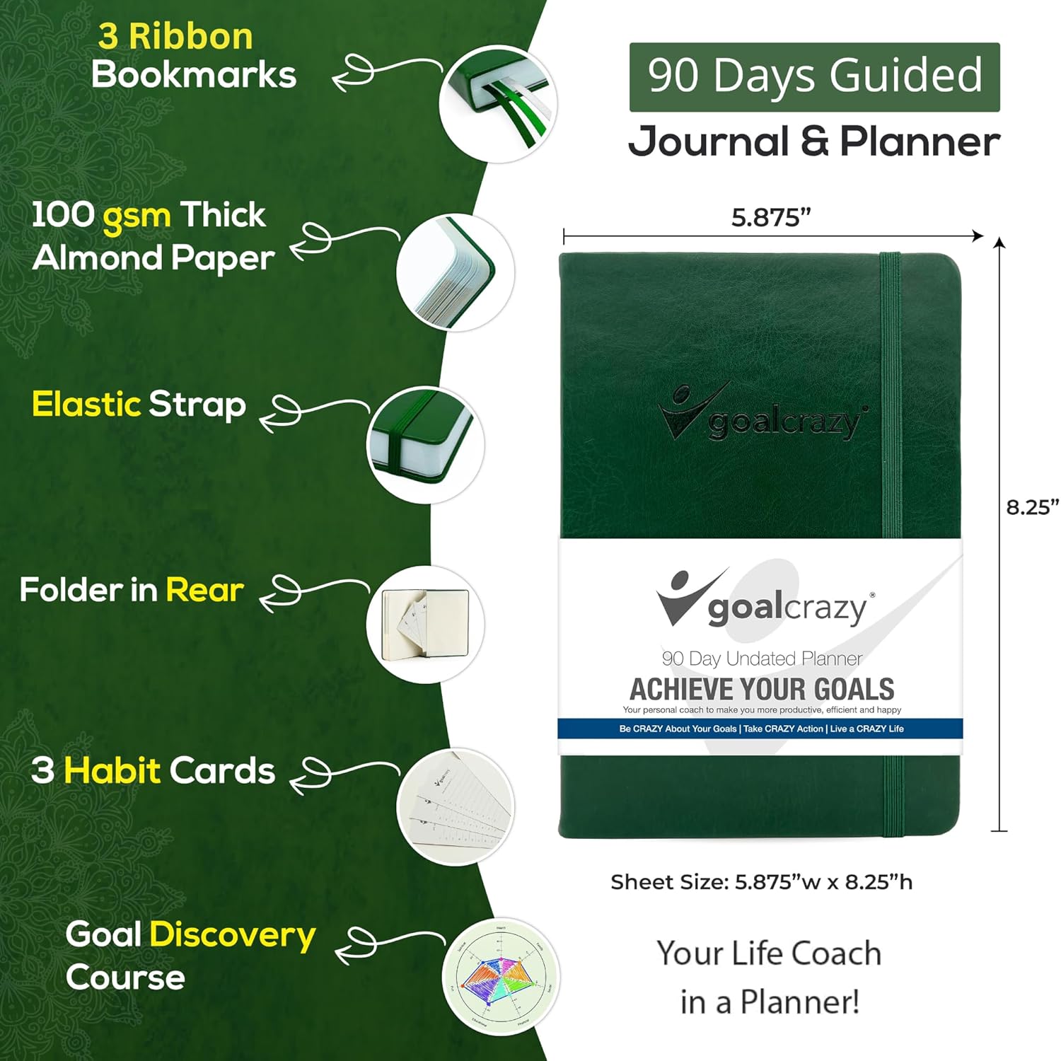 - PREMIUM DESIGN & MATERIALS – Crafted in A5 size (5.875” x 8.25”), this planner features a durable PU leather hardcover, 3 ribbon bookmarks, elastic strap, rear folder, and thick 100gsm almond pages that resist bleed-through for a smooth writing experience.