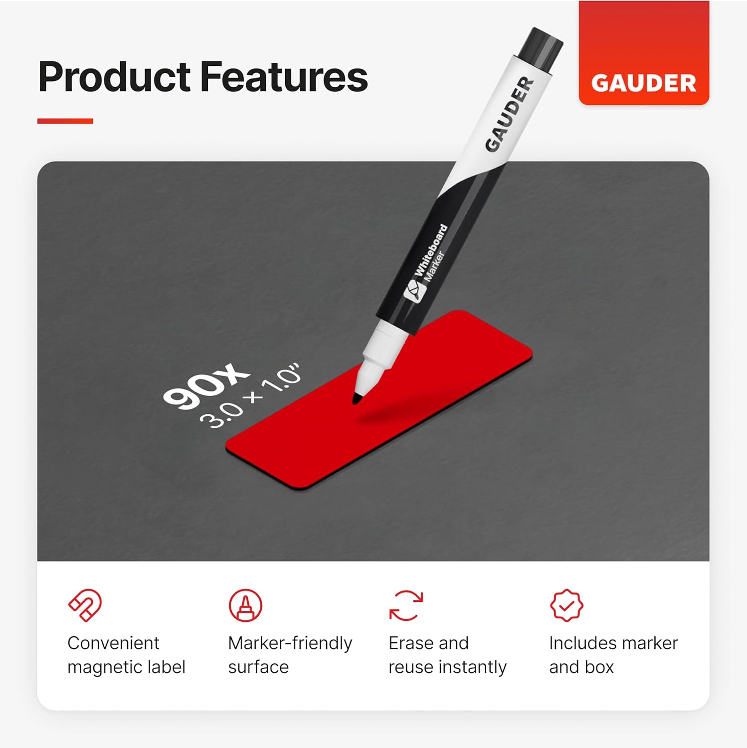 GAUDER Magnetic Dry Erase Labels | 90x Magnetic Labels (3 Inches x 1 Inch) | Dry Erase Magnets for Classroom, Whiteboard and Blackboard