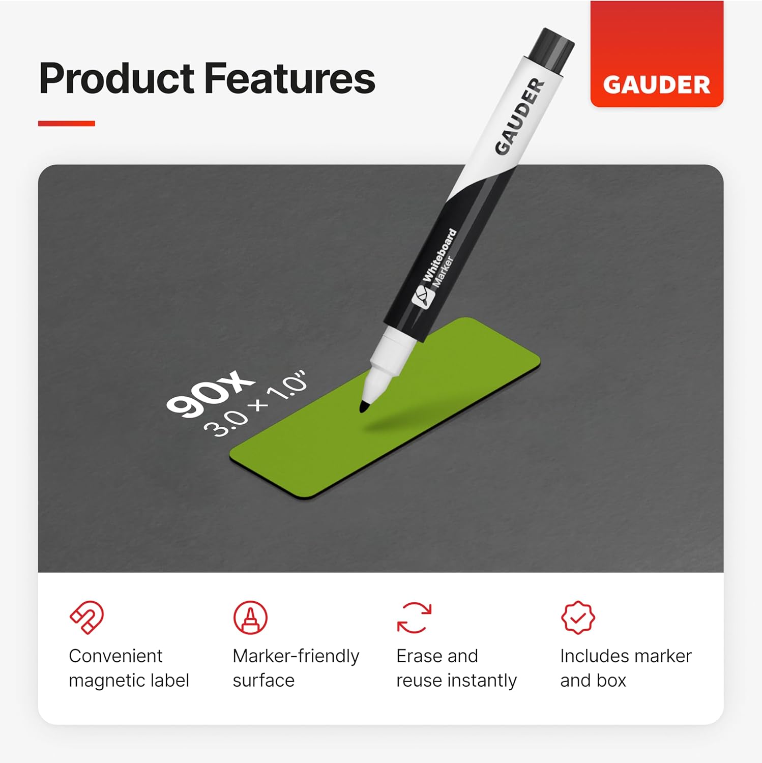GAUDER Magnetic Dry Erase Labels | 90x Magnetic Labels (3 Inches x 1 Inch) | Dry Erase Magnets for Classroom, Whiteboard and Blackboard