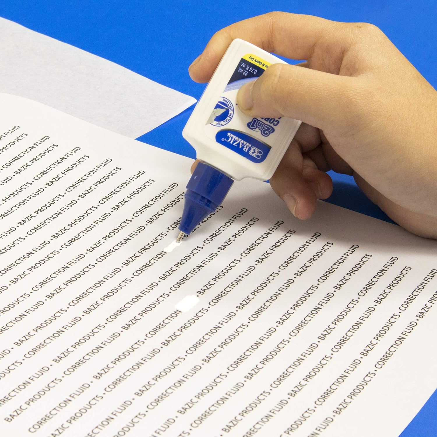 BAZIC Correction Liquid 2 in 1 (0.74 oz / 22 ml), Foam Brush & Precise Metal Tip Applicator, Instant Corrections Pen White Out Fluid, 144-Packs
