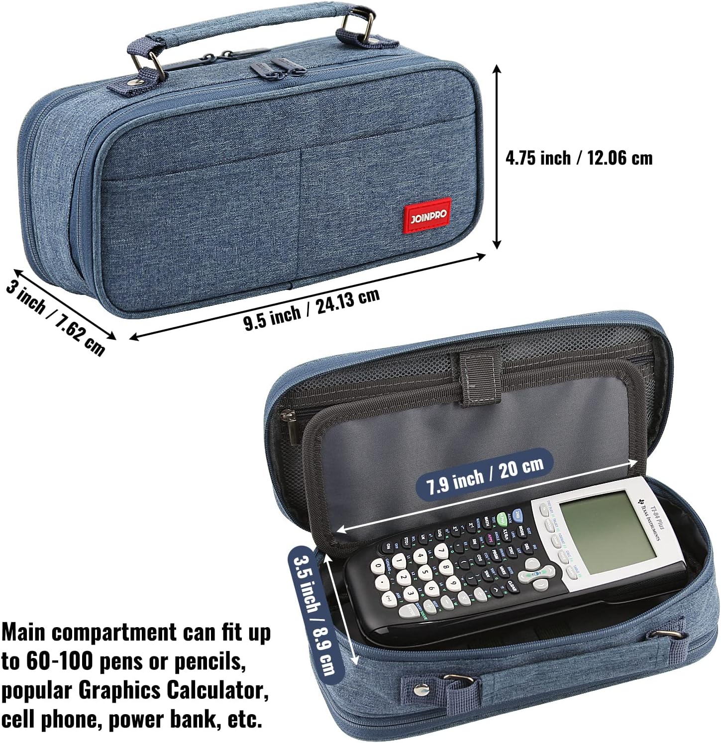 - Unique Designs - Fashionable colors and appearance, with three-dimensional and layered structure design. Two double-zipper, interior mesh pockets, and different compartments are designed for this pencil bag, it can hold pretty much everything a student needs. With rivet reinforcement handle strap design, not easy to break; and thickened handle strap for comfortable use and easy to carry.