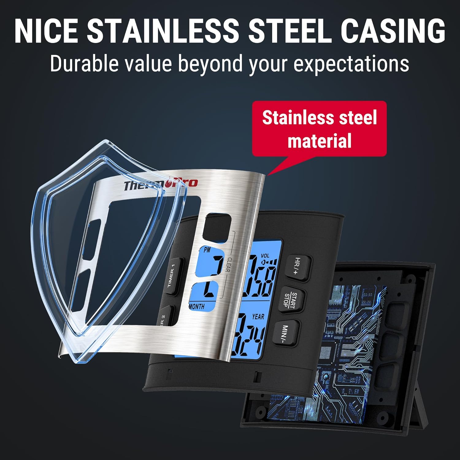 ThermoPro TM02 Digital Kitchen Timer - Dual Countdown Function with Magnetic Backing, Adjustable Alarm & Backlit LCD Display, Ideal for Cooking, Baking and as 24-Hour Shower Clock for Kids