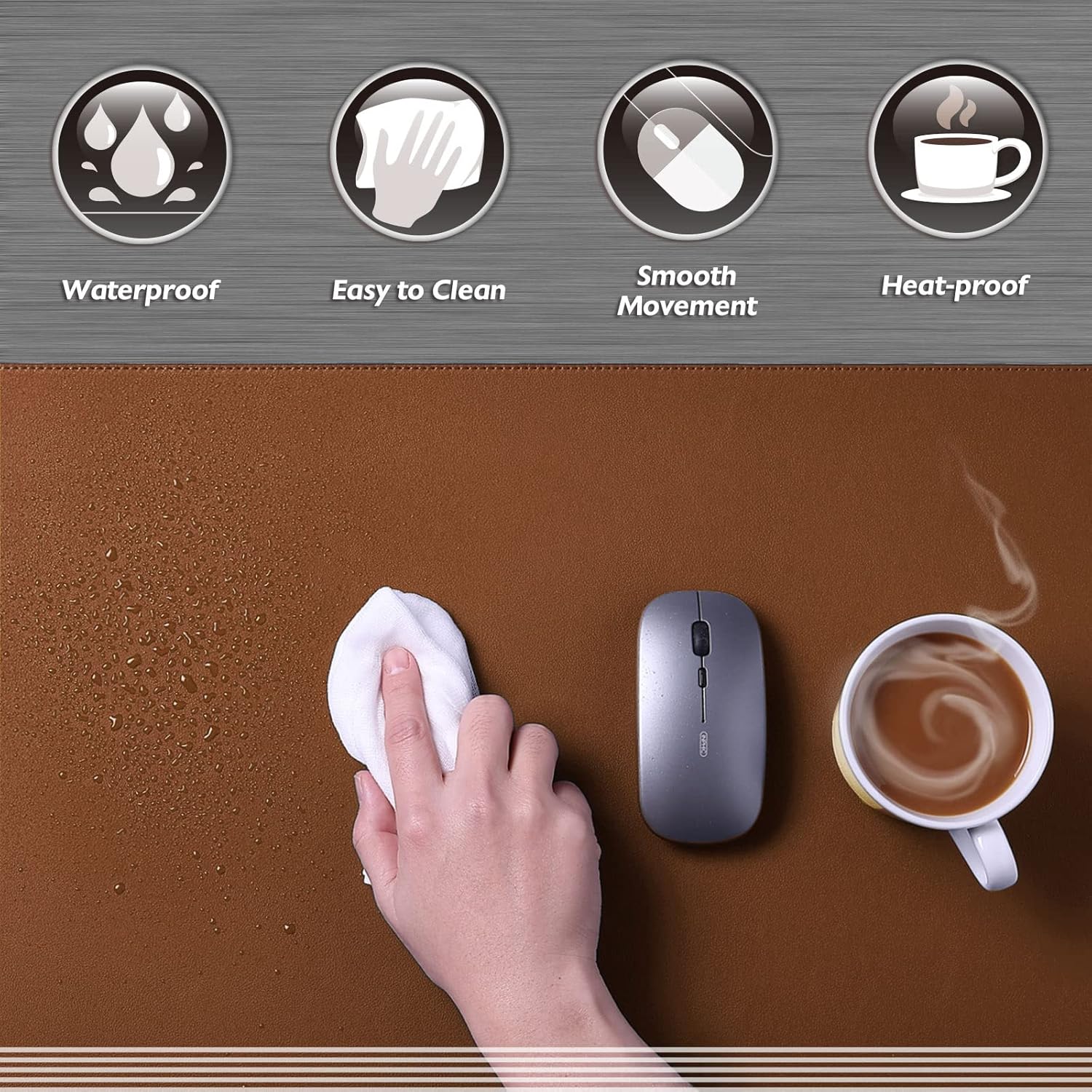 K KNODEL Desk Mat, Blotter, Dual-Sided Office Desk Pad, Waterproof Desk Mat for Desktop, Desk Blotters, PVC Leather Pad Protector (Brown, 23.6" x 13.8")
