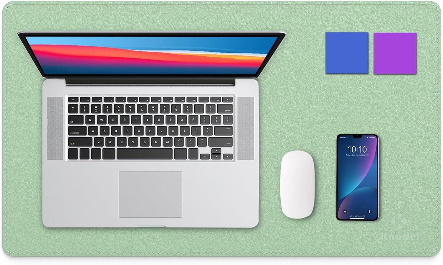 K KNODEL Desk Mat, Blotter, Dual-Sided Office Desk Pad, Waterproof Desk Mat for Desktop, Desk Blotters, PVC Leather Pad Protector (Sharp Green, 23.6" x 13.8")