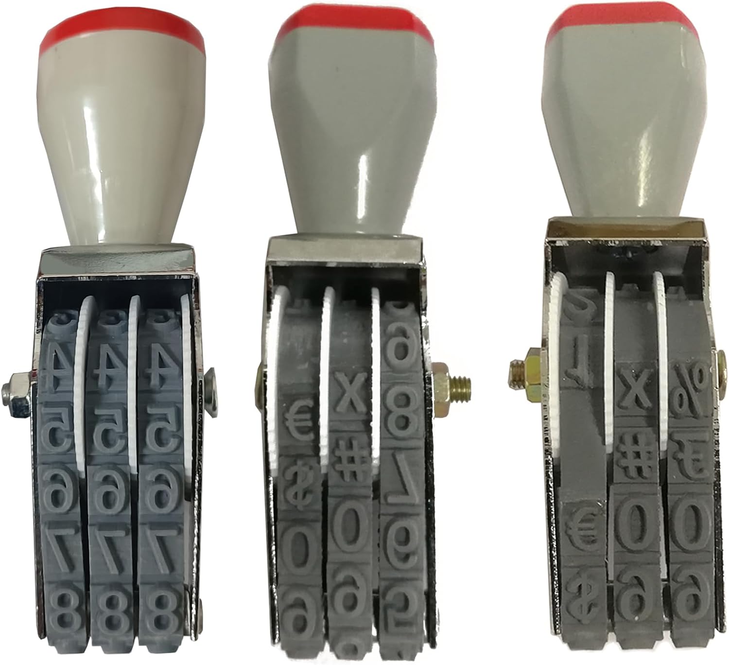 - 3 Adjustable Wheels: Set numbers (0-9) and symbols (#, X, %, etc.) on each belt for custom imprints.