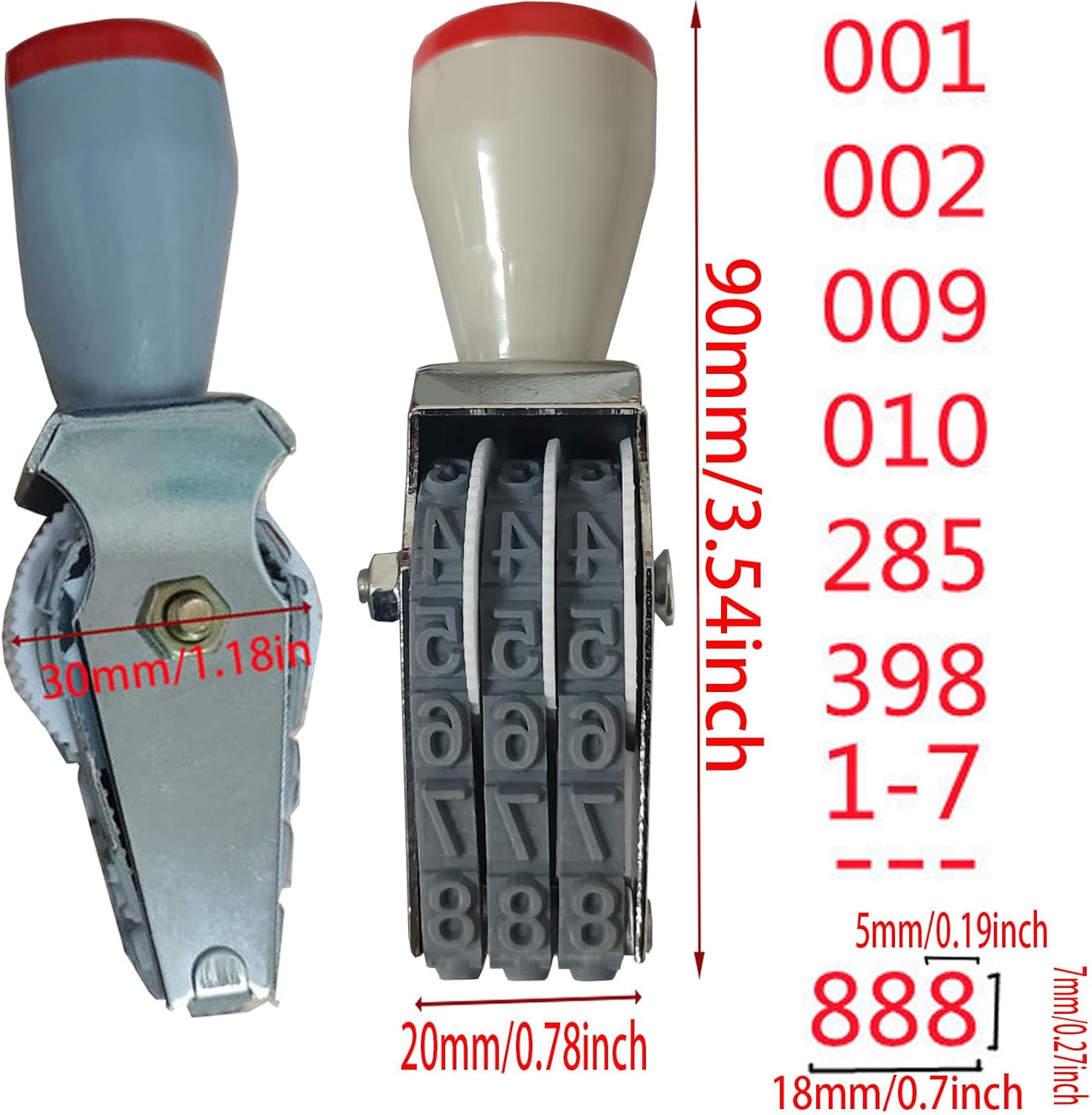 ZENG Adjustable 3-Digit Manual Rolling Stamp - Numbers 0-9 & Symbols, Metal/Rubber Office Numbering Tool, 18x7mm Imprint, Multicolor - Ink Not Included