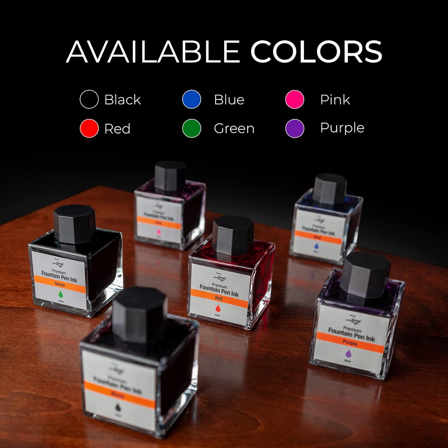 ZenZoi Fountain Pen Ink Bottle 50ml | Premium Designed Bottled Ink for Fountain Pens – Suitable for Calligraphy and All Branded Pens | Quick Drying and Smooth Flow Writing Experience (Black)