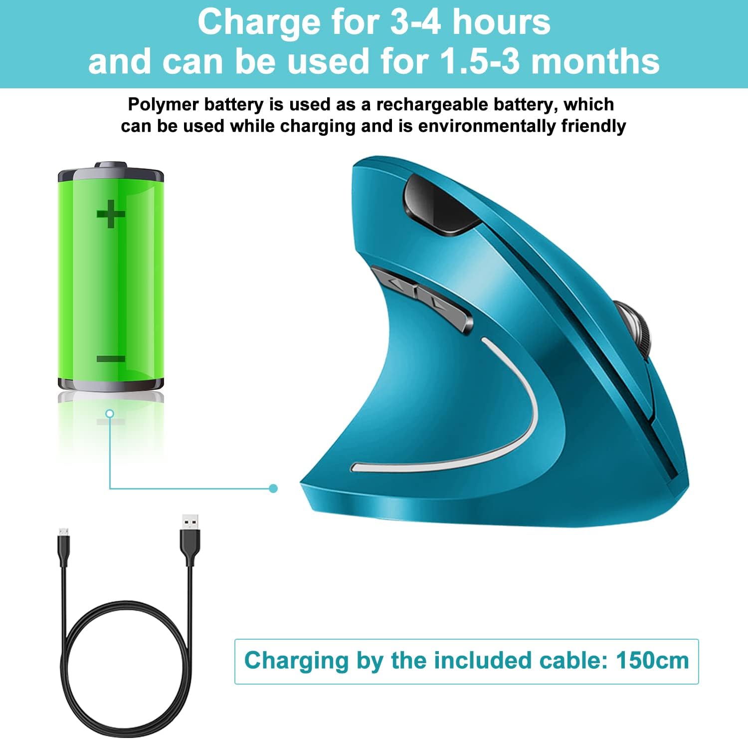 Vassink Ergonomic Wireless Mouse, Rechargeable Mouse 2.4Hz Vertical Wireless Optical Mice with USB Receiver, 6 Buttons for PC,Laptop,etc Blue