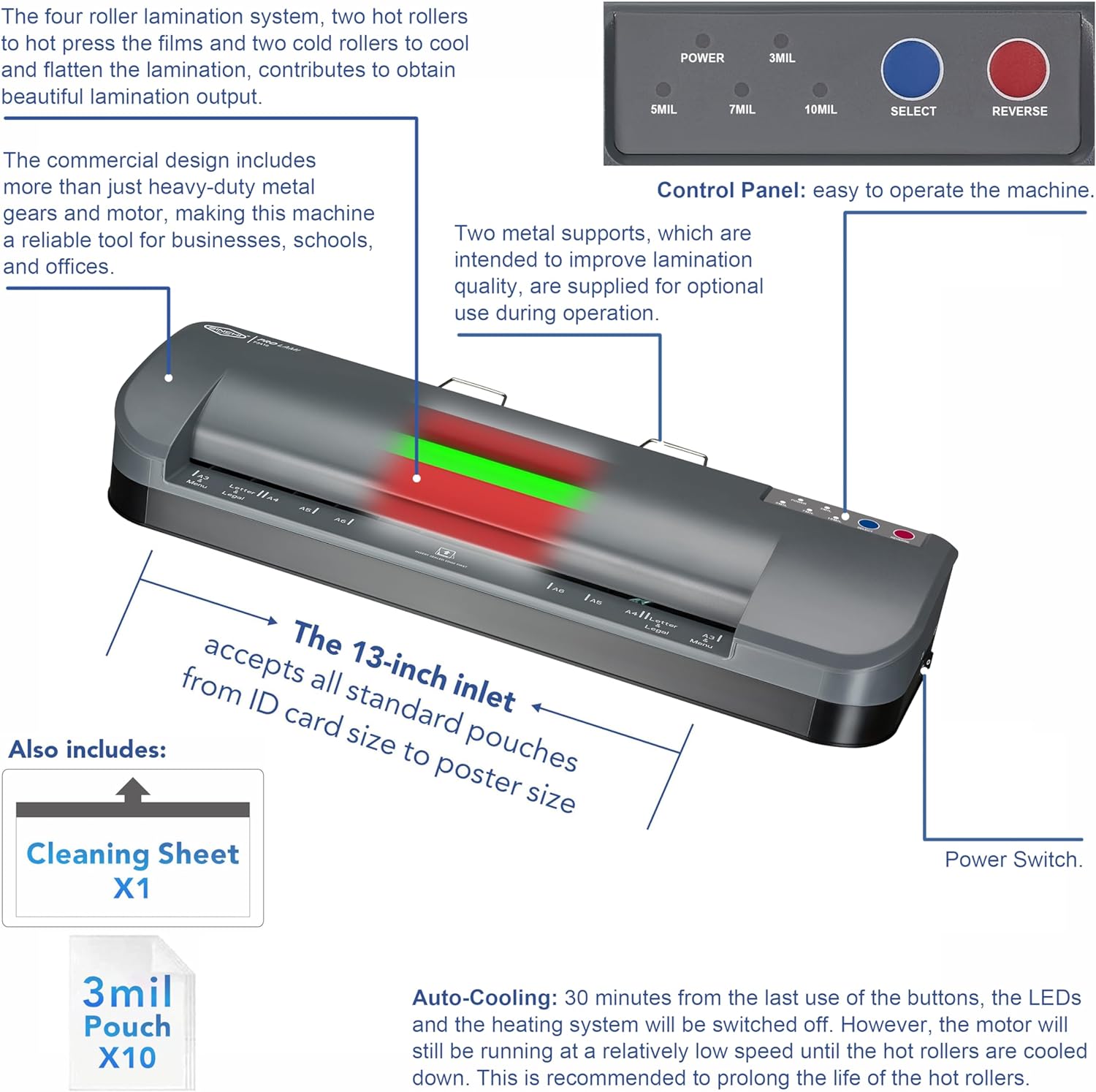 - 【Starter Kit Included】Comes with 10 letter-size 3 mil laminating pouches and 1 cleaning sheet to help maintain clean rollers, reduce jamming, and ensure smooth, reliable operation.