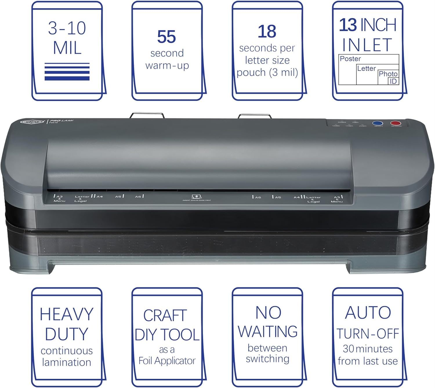 SINCHI 13-Inch Thermal Laminator & Foil Applicator, 3–10 Mil, 4-Roller, 55s Warm-Up, 40 in/Min, Auto Shutoff, Commercial-Grade Laminating Machine with 10 Pouches for Office, School, Crafts & DIY