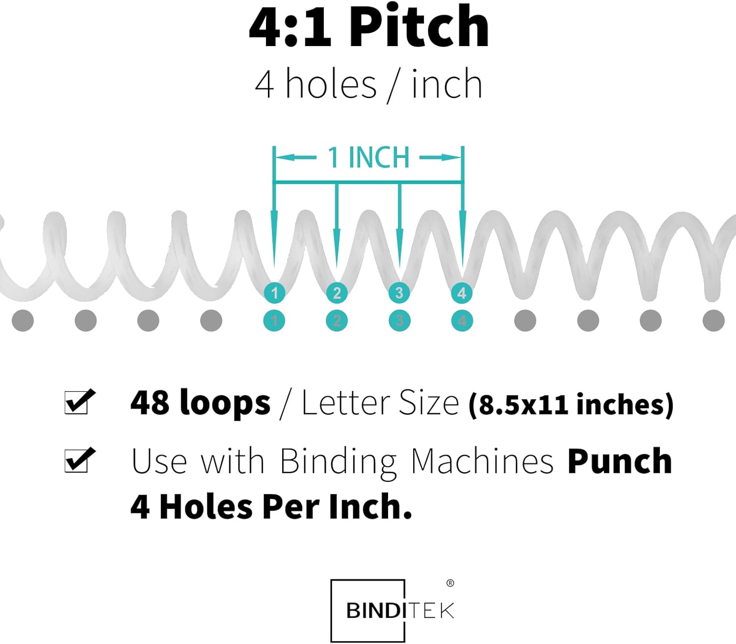 - 【4:1 Pitch & 48 Loops】Spiral binding coils have a 4:1 pitch, making them compatible with any binding machine that punches 4 holes per inch. (Attention: These 4:1 pitch binding coils are not compatible with the Cinch machine.)