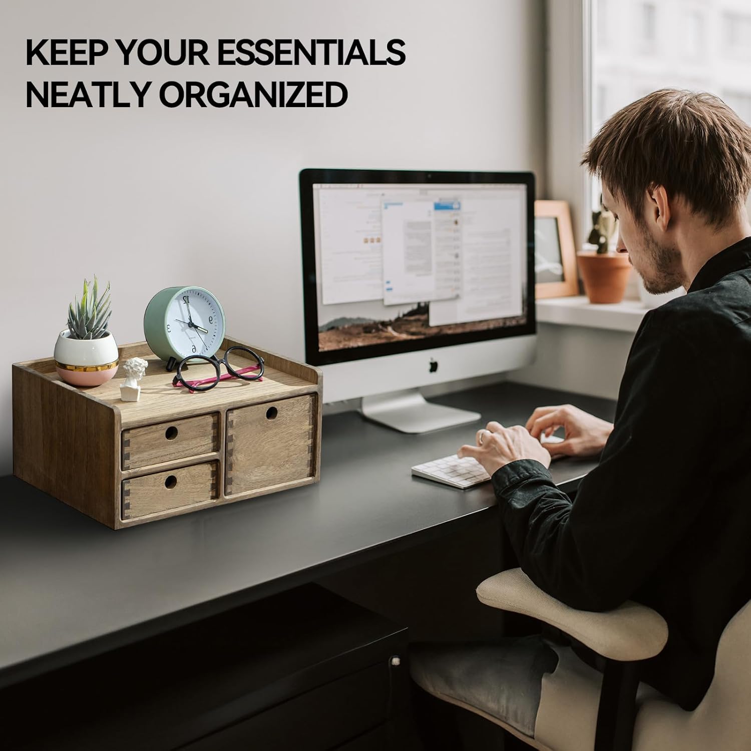 - [EXQUISITE WORKMANSHIP]: The desk organizer is made of selected real wood, the texture is clear and natural, exquisite workmanship,hand polishing.
