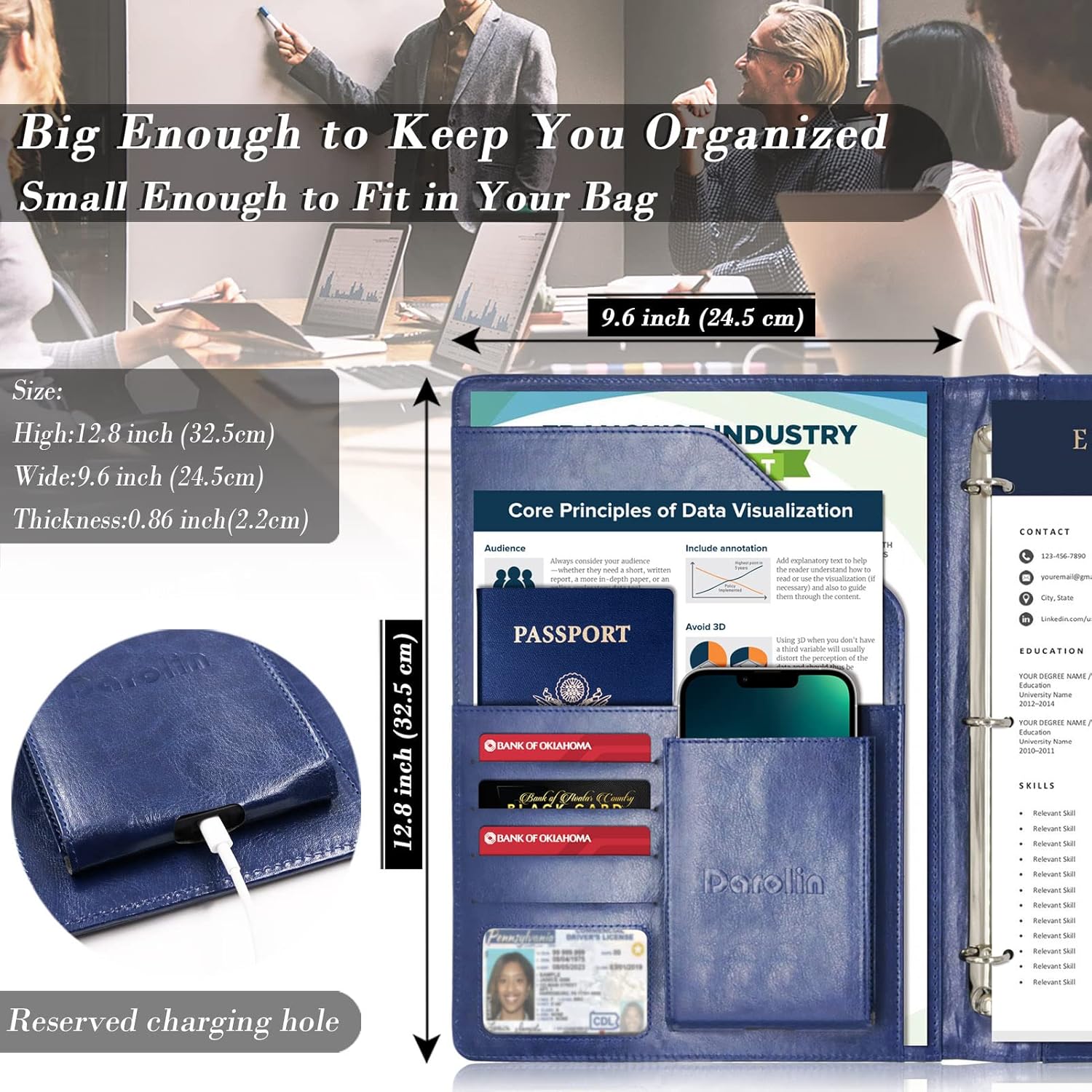 Darolin Business/Resume Portfolio Folder Binder, Padfolio with 3 Ring Binder, Interview/Conference/Legal Document Portfolio Organizer, Leather Portfolio Padfolio for Women/Men-BL