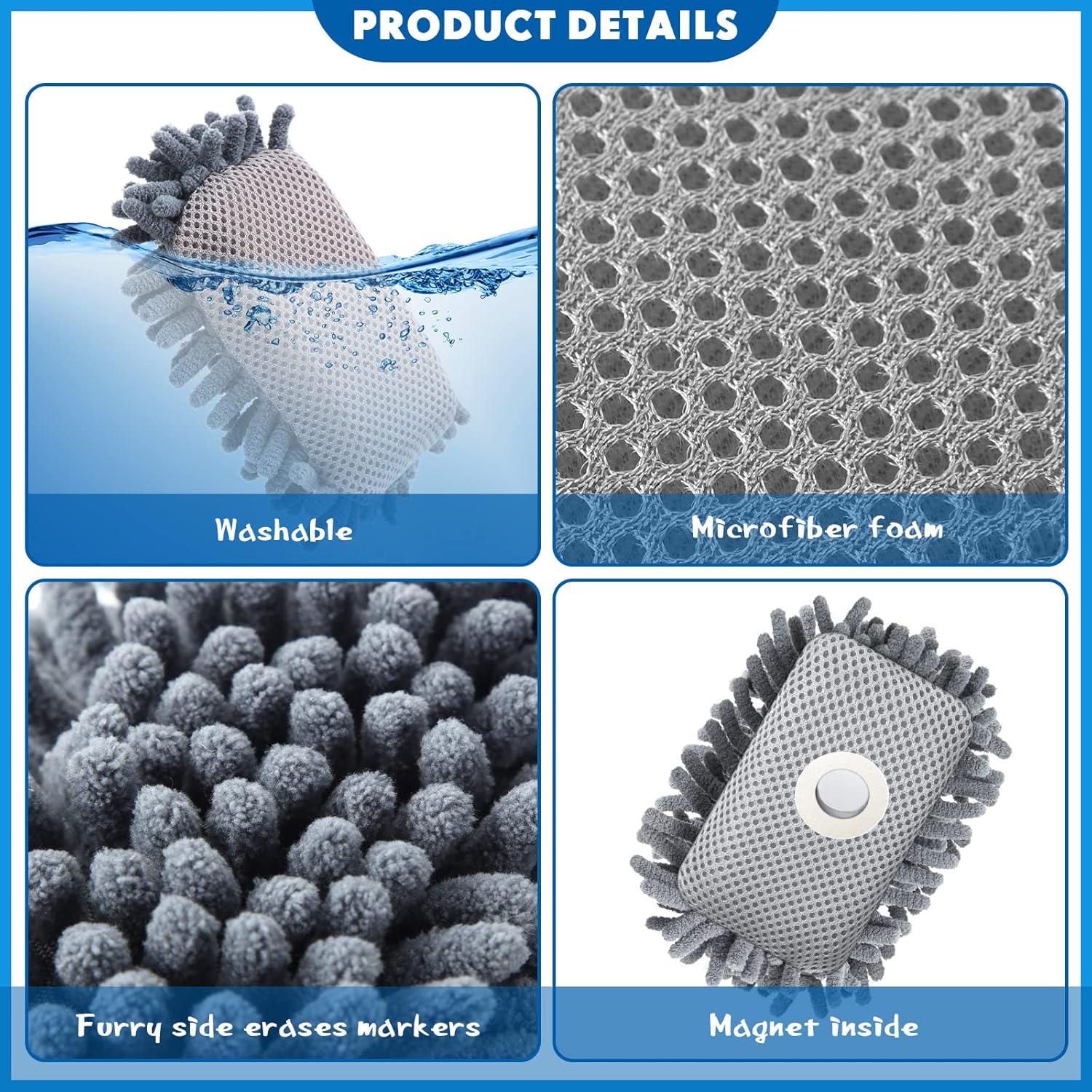 - Reliable and Washable: the chalk eraser for chalkboard is made up of quality microfiber, foam and magnet, which is reliable and long lasting to use, washable and reusable, not easy to fray or fade