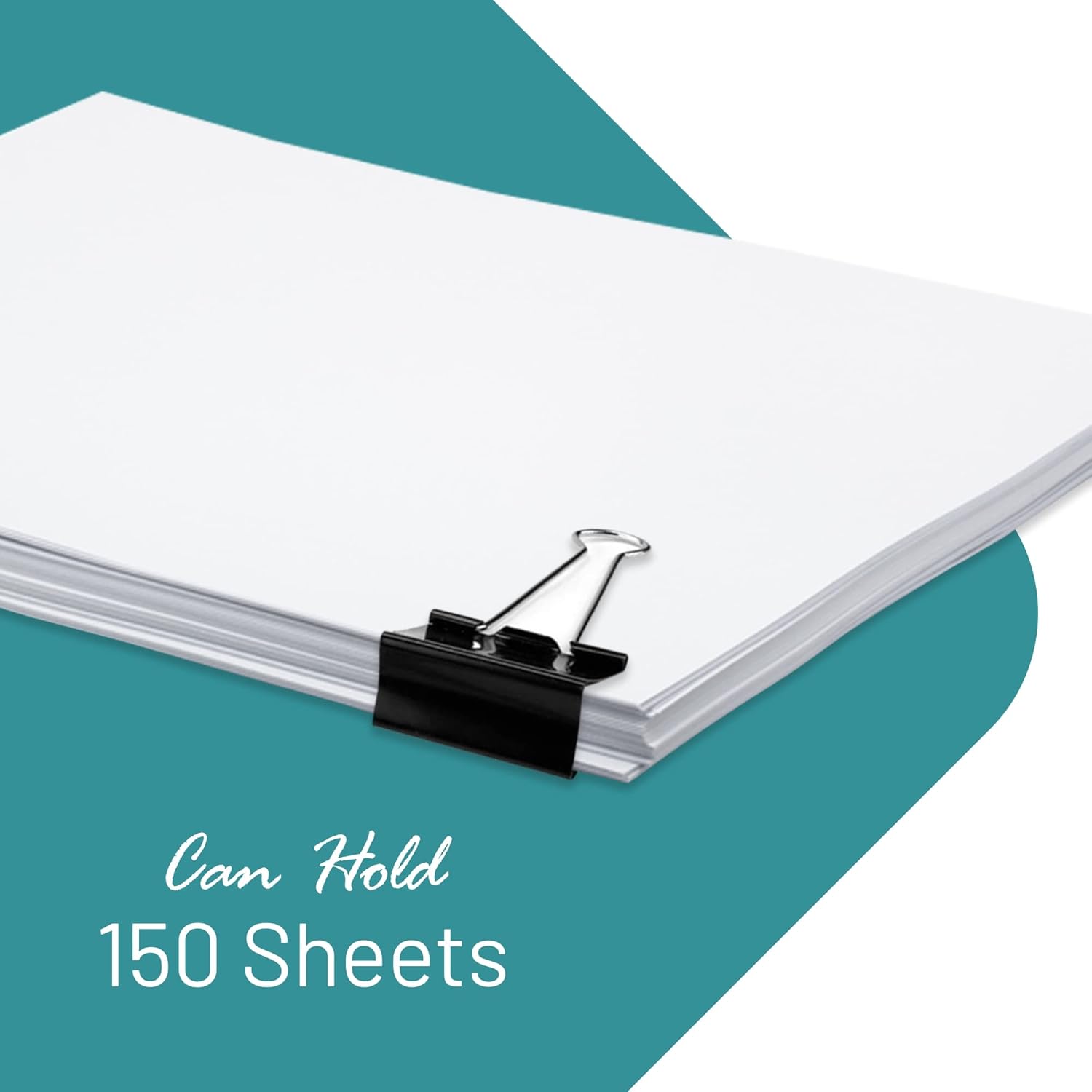 - Includes 60 medium binder clips. 1.25” – holds 150 sheets of paper.